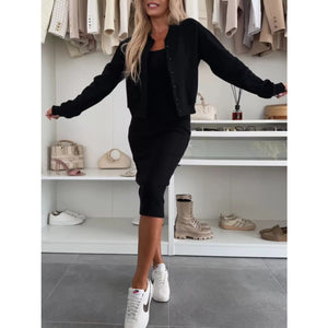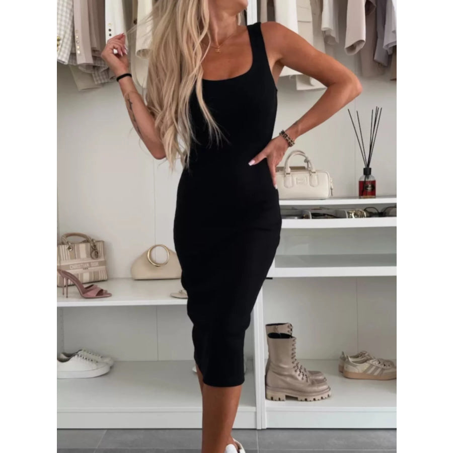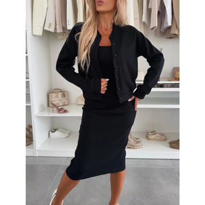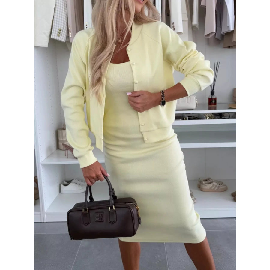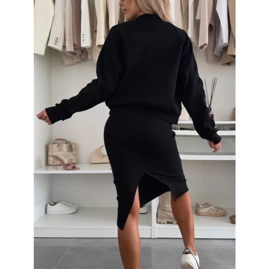 Full Size Slit Square Neck Dress and Outerwear Set Plus Size