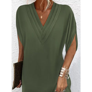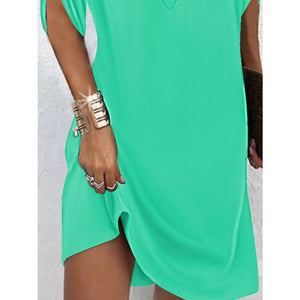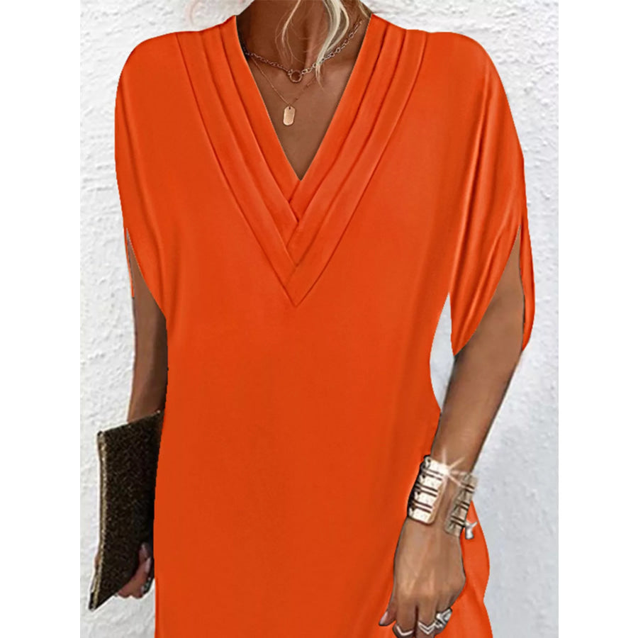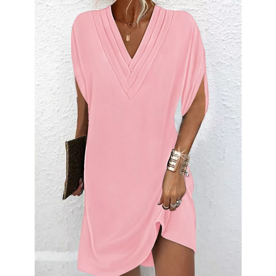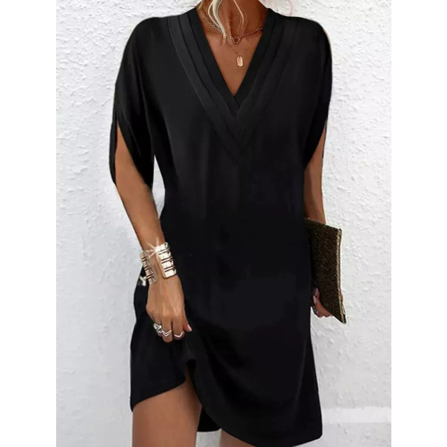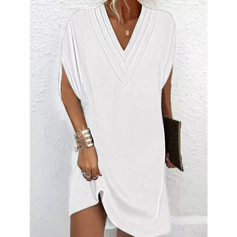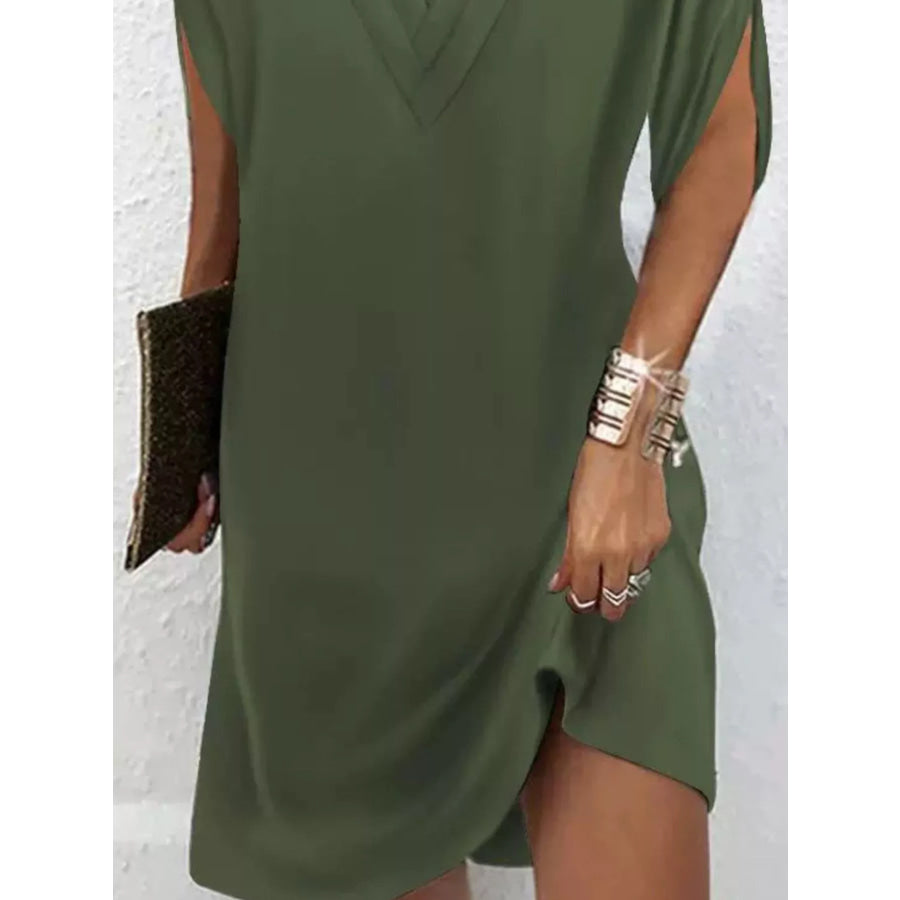 Full Size V-Neck Slit Sleeve Mini Dress Plus Size