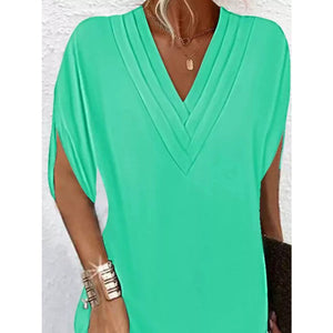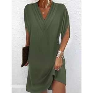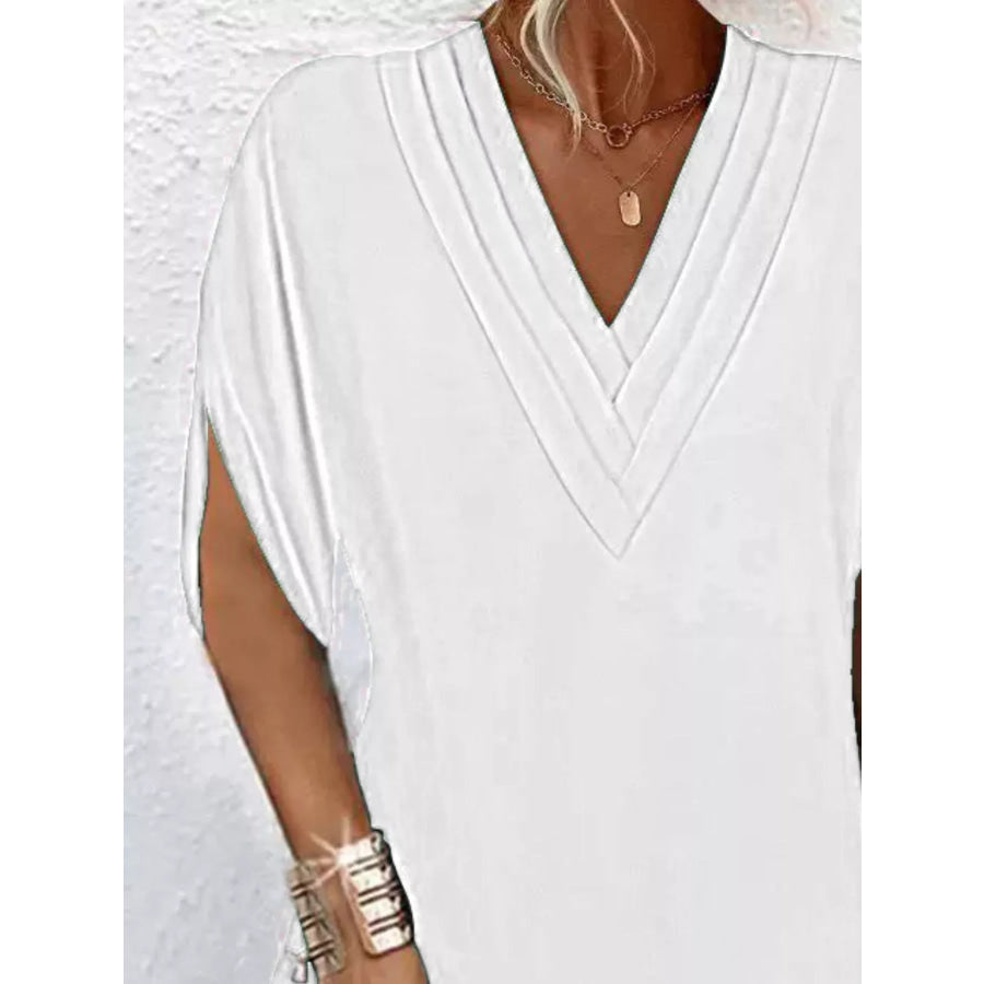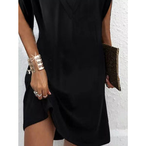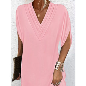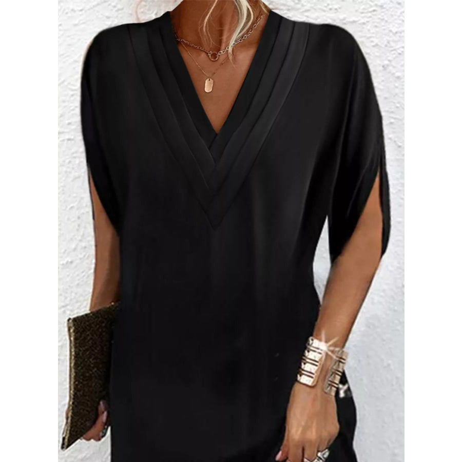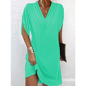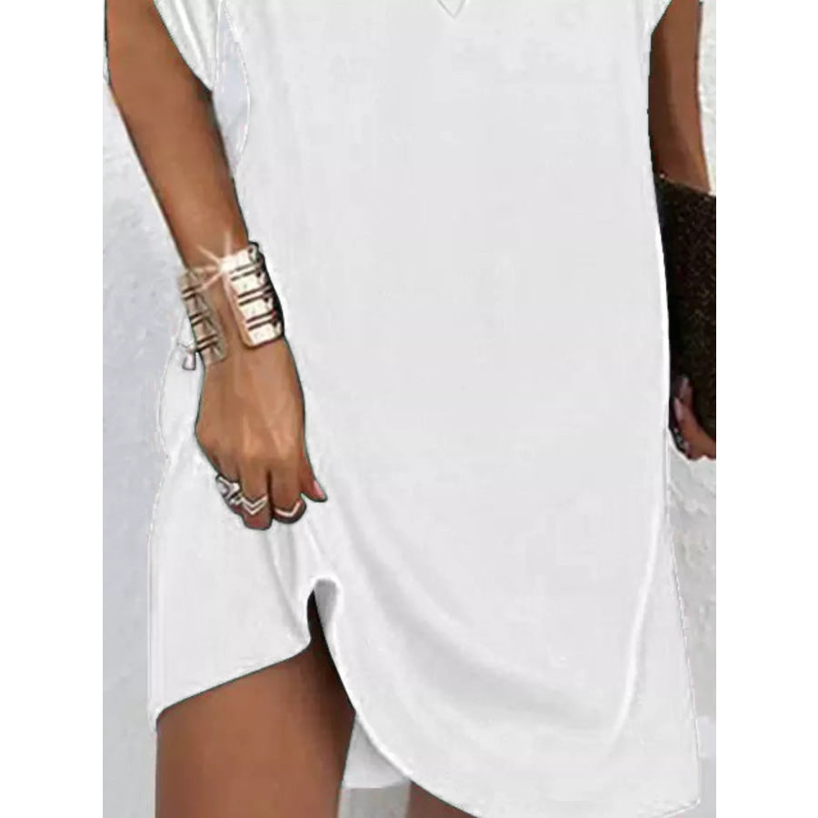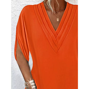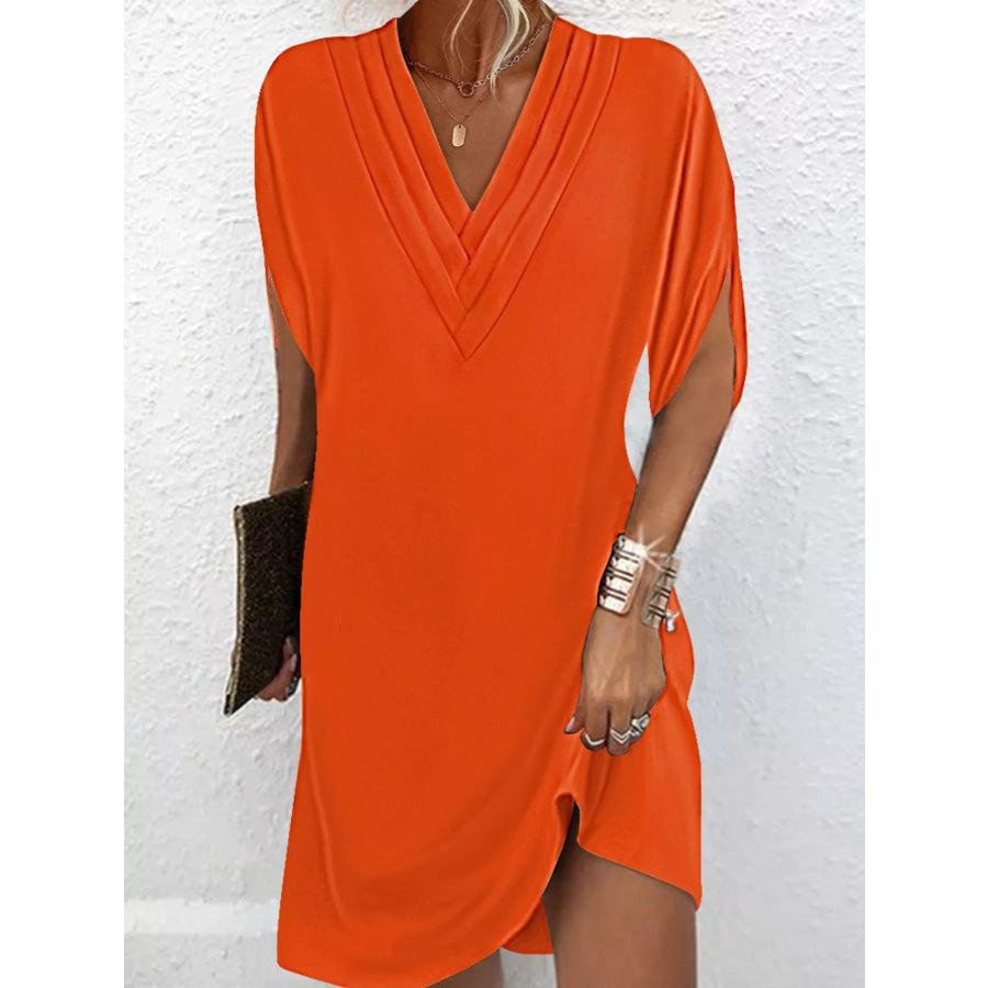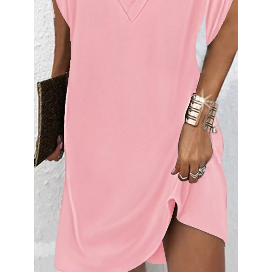Full Size V-Neck Slit Sleeve Mini Dress Plus Size