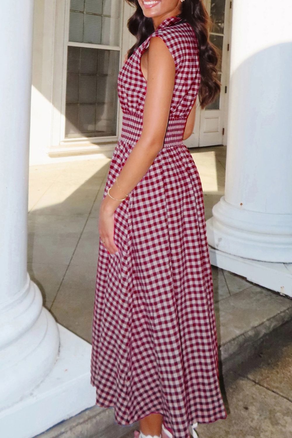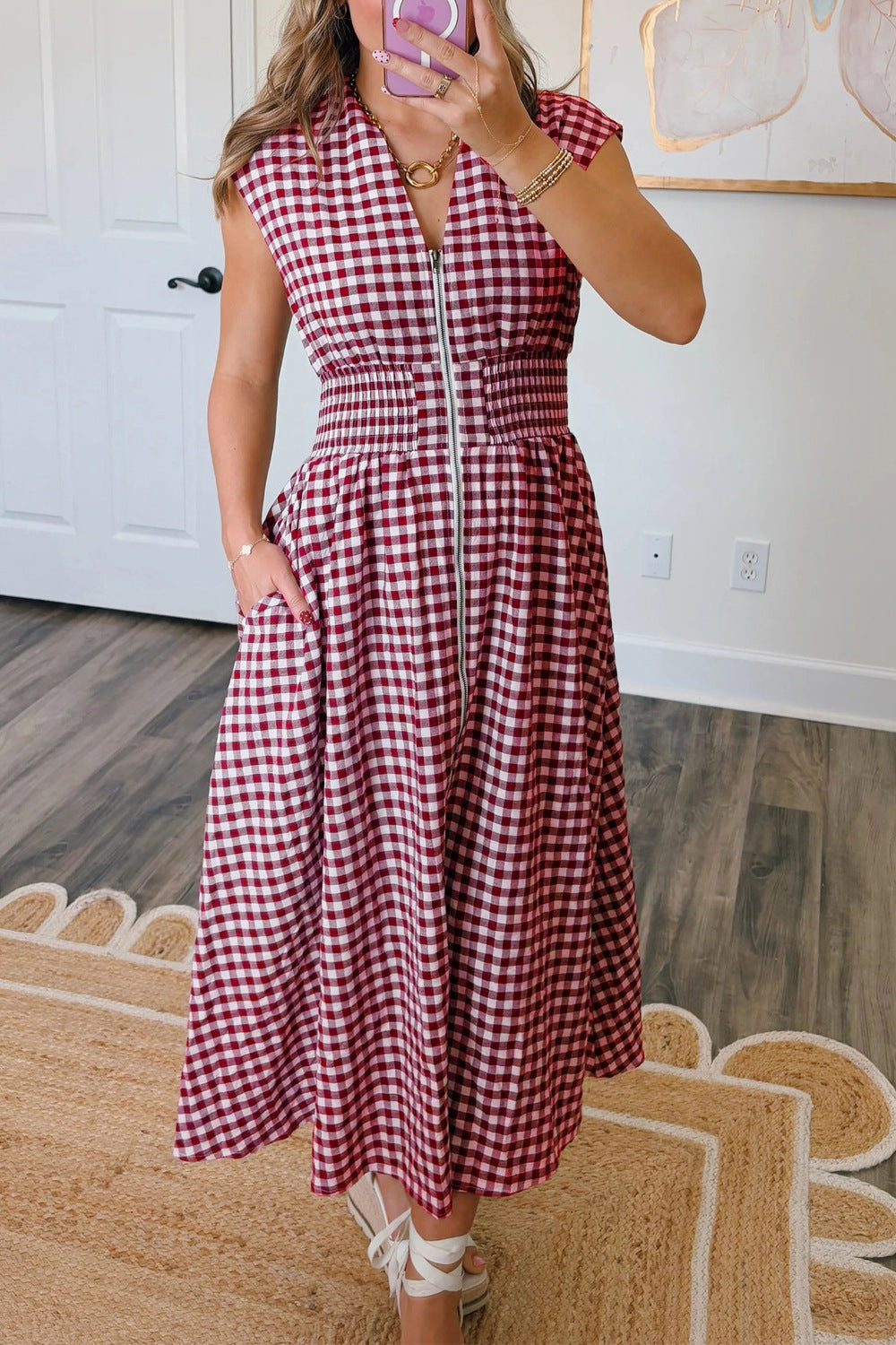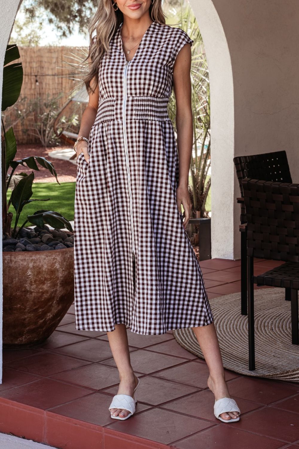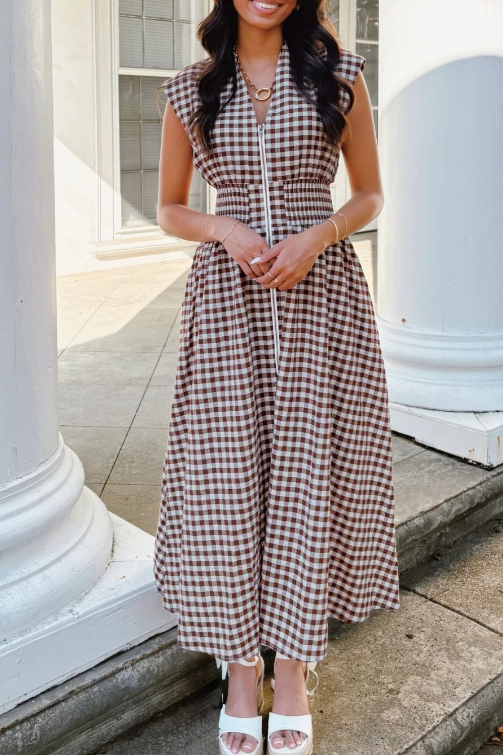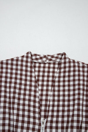 Gingham Zip-Front Midi Dress