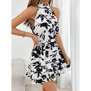 Halter Neck Floral Print Mini Dress
