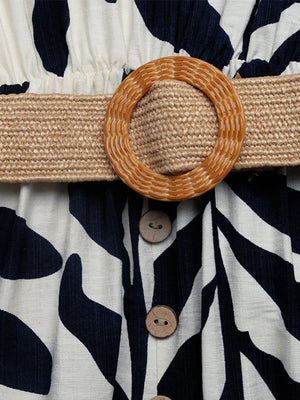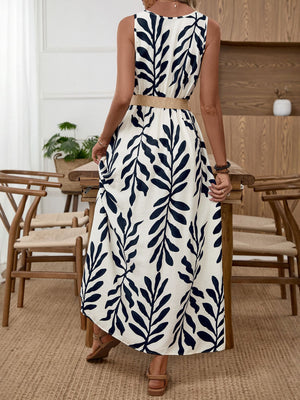 Leaf Print Sleeveless Slit Dress