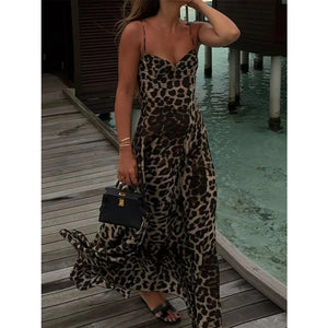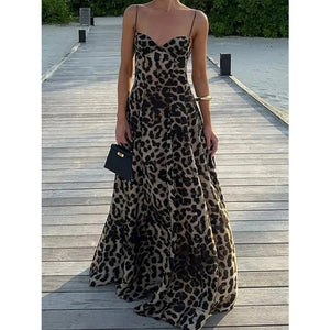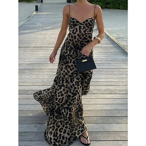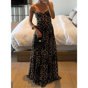 Leopard Print Sweetheart Neck Maxi Cami Dress