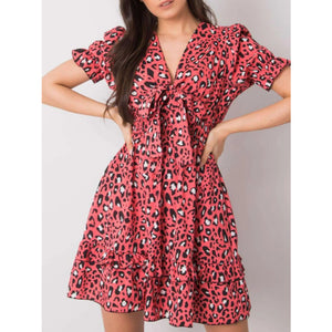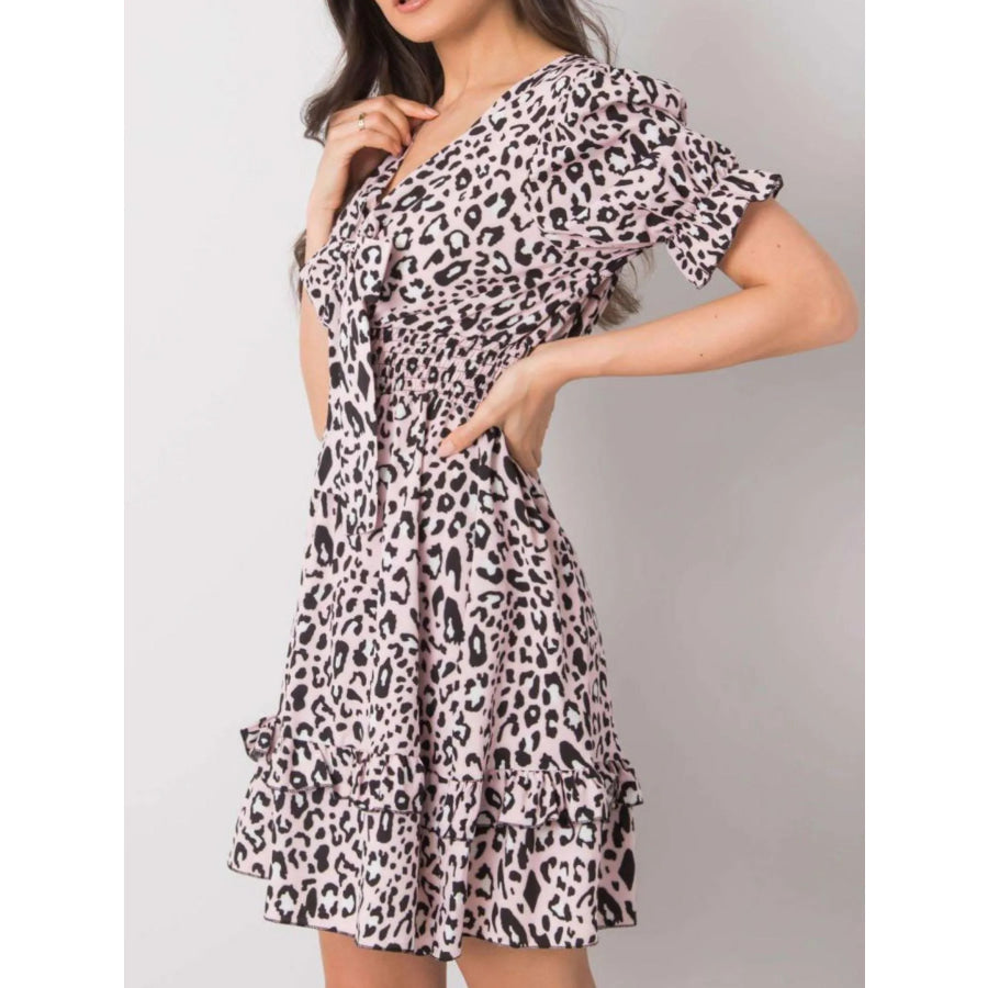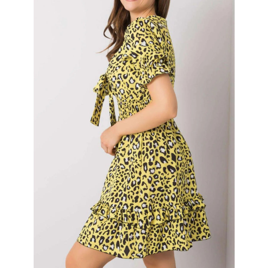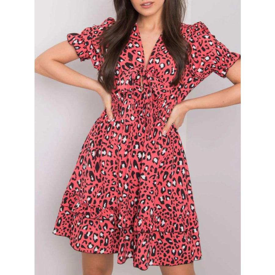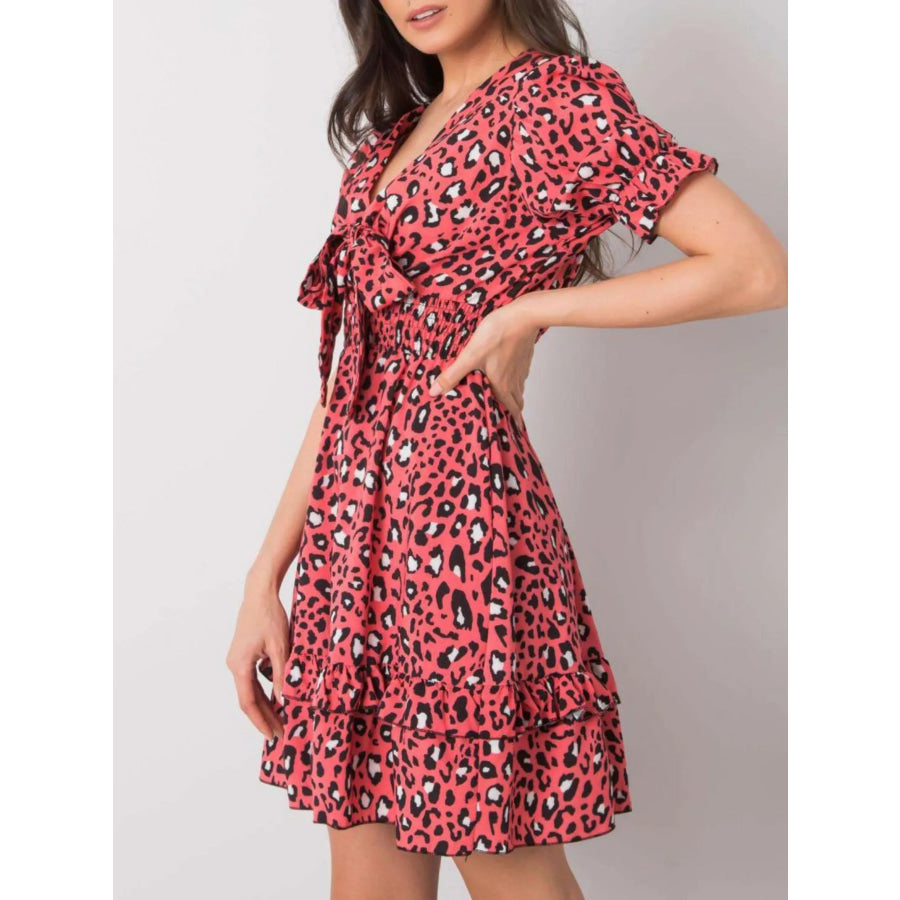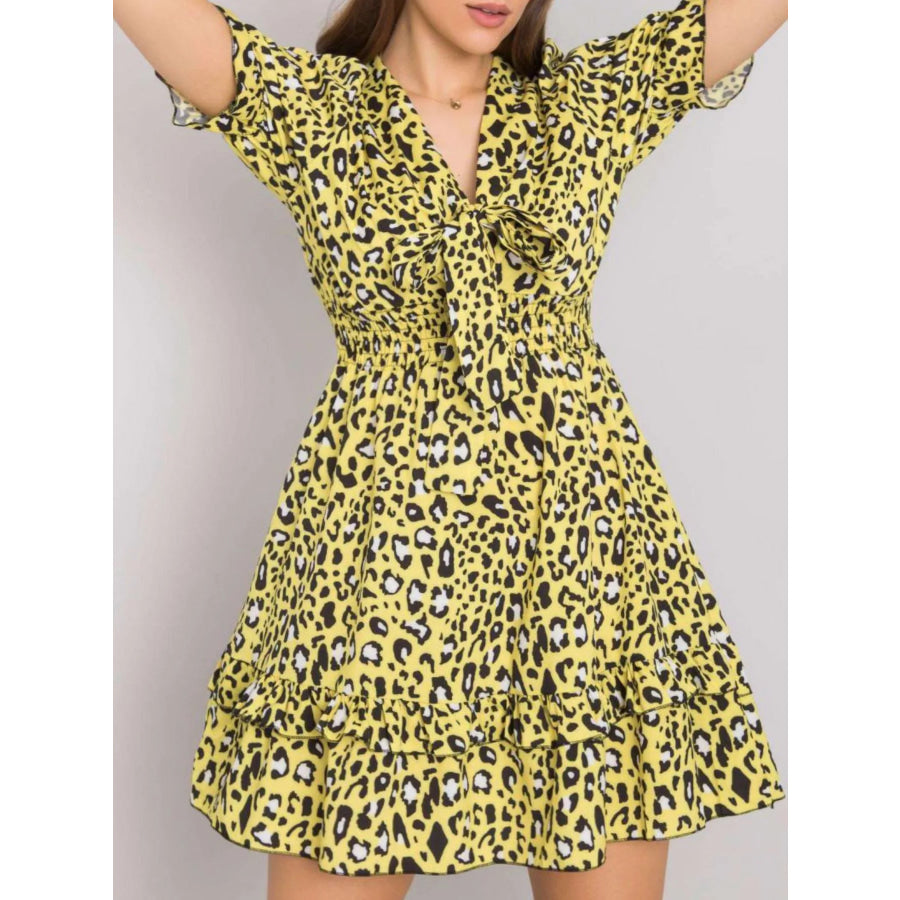 Leopard Print Tie Front Short Sleeve Mini Dress