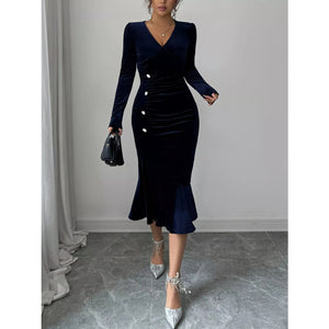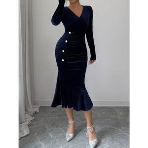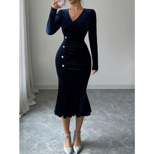 Long Sleeve V-Neck Mermaid Dress