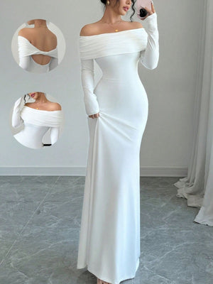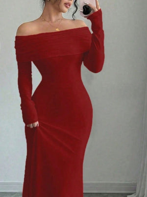 Off-Shoulder Long Sleeve Maxi Dress