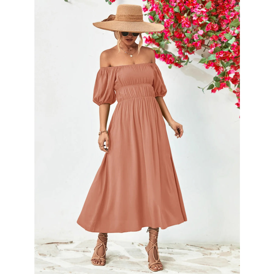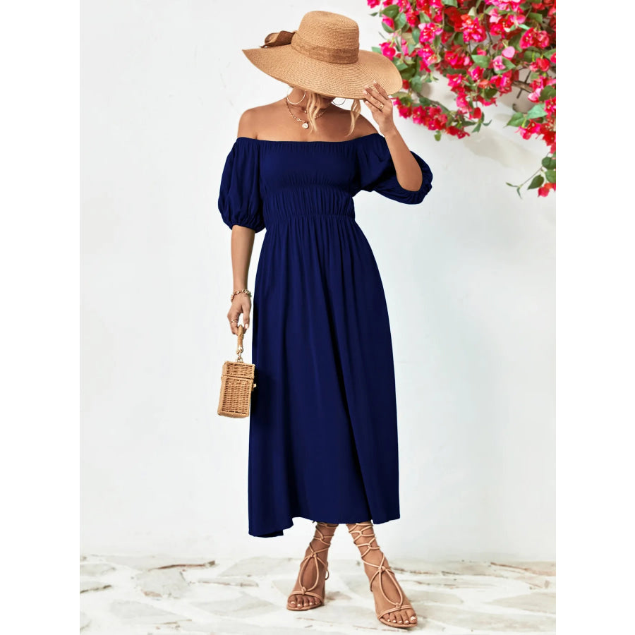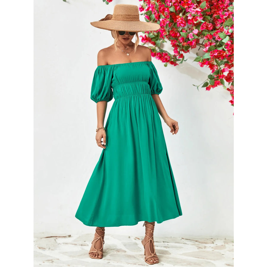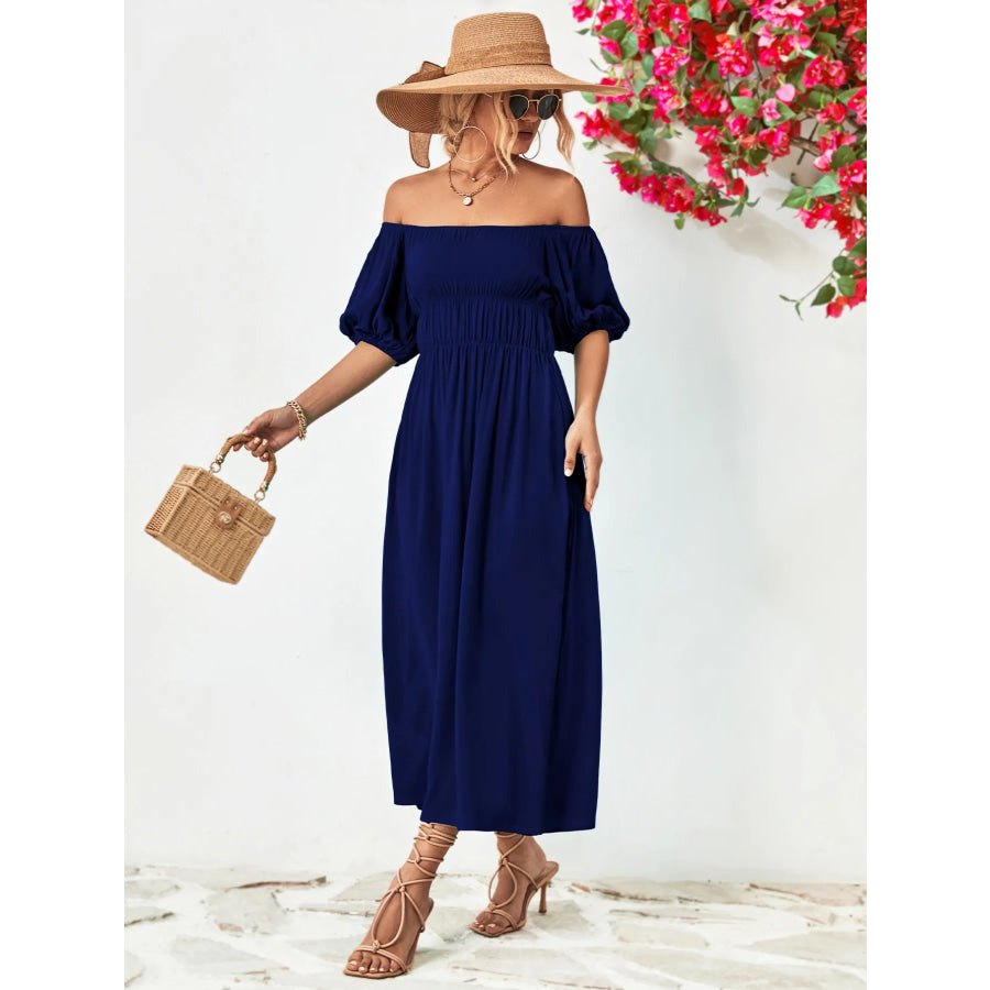 Off-Shoulder Puff Sleeve Smocked Maxi Dress