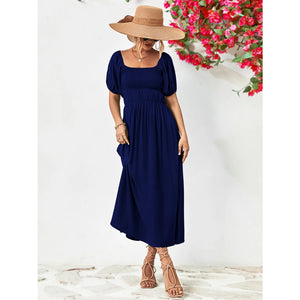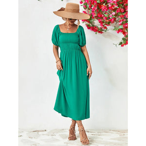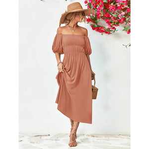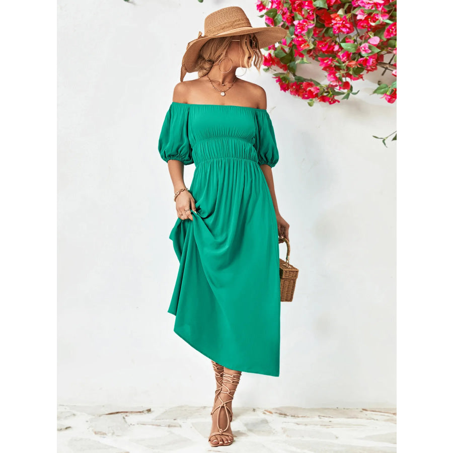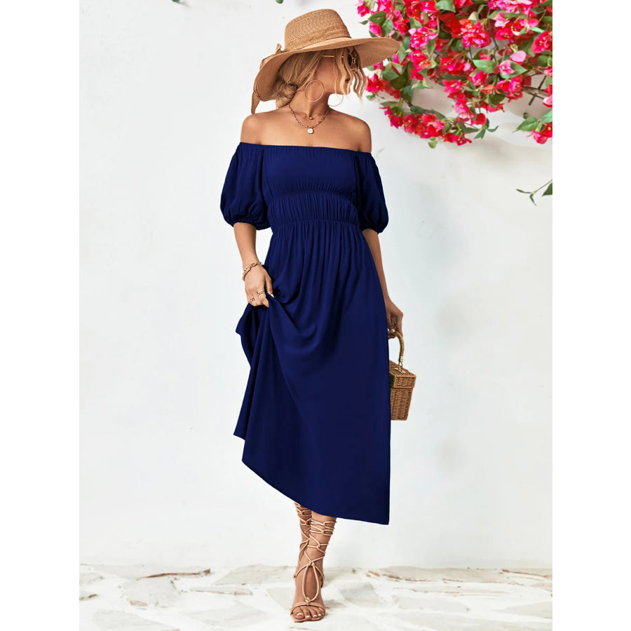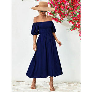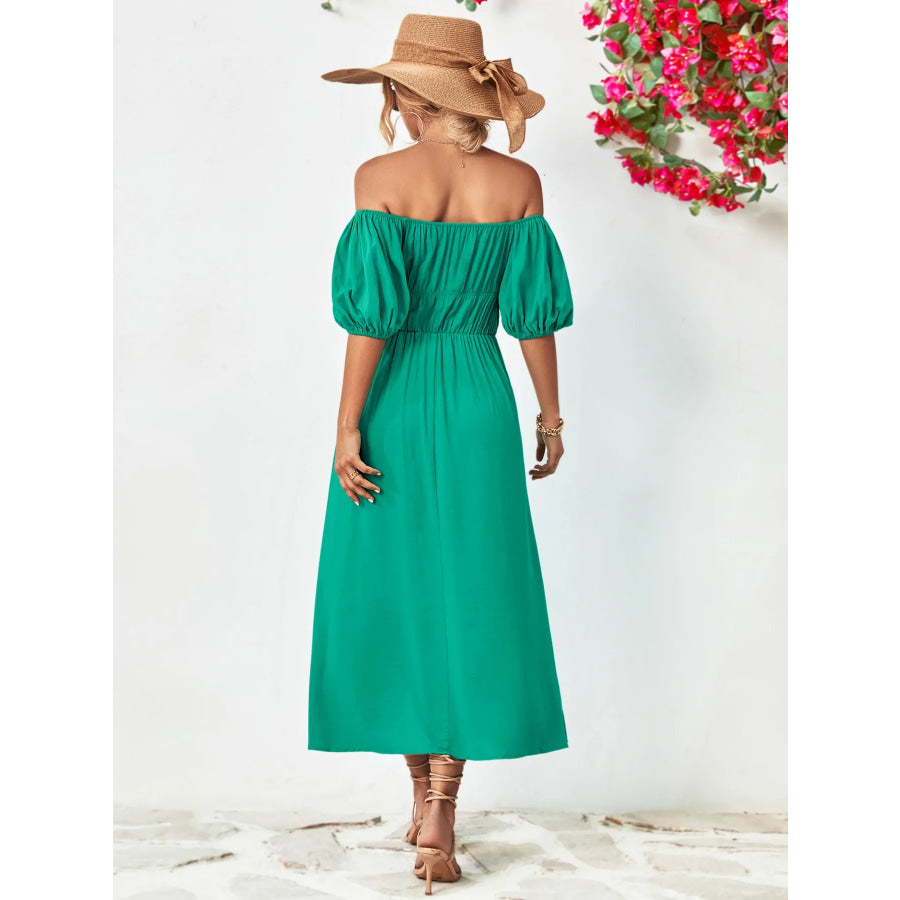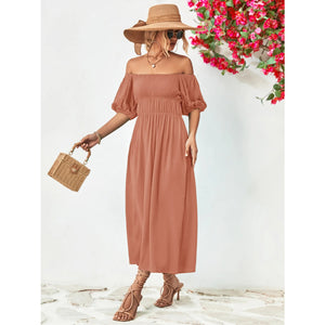 Off-Shoulder Puff Sleeve Smocked Maxi Dress