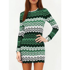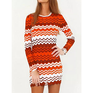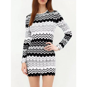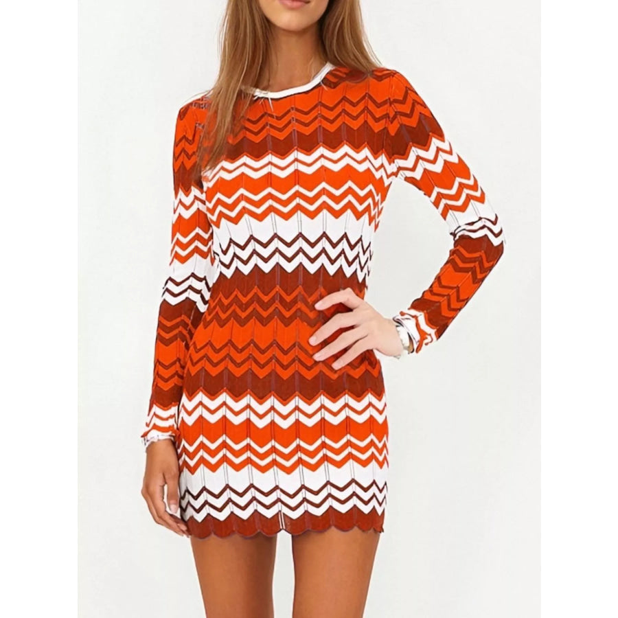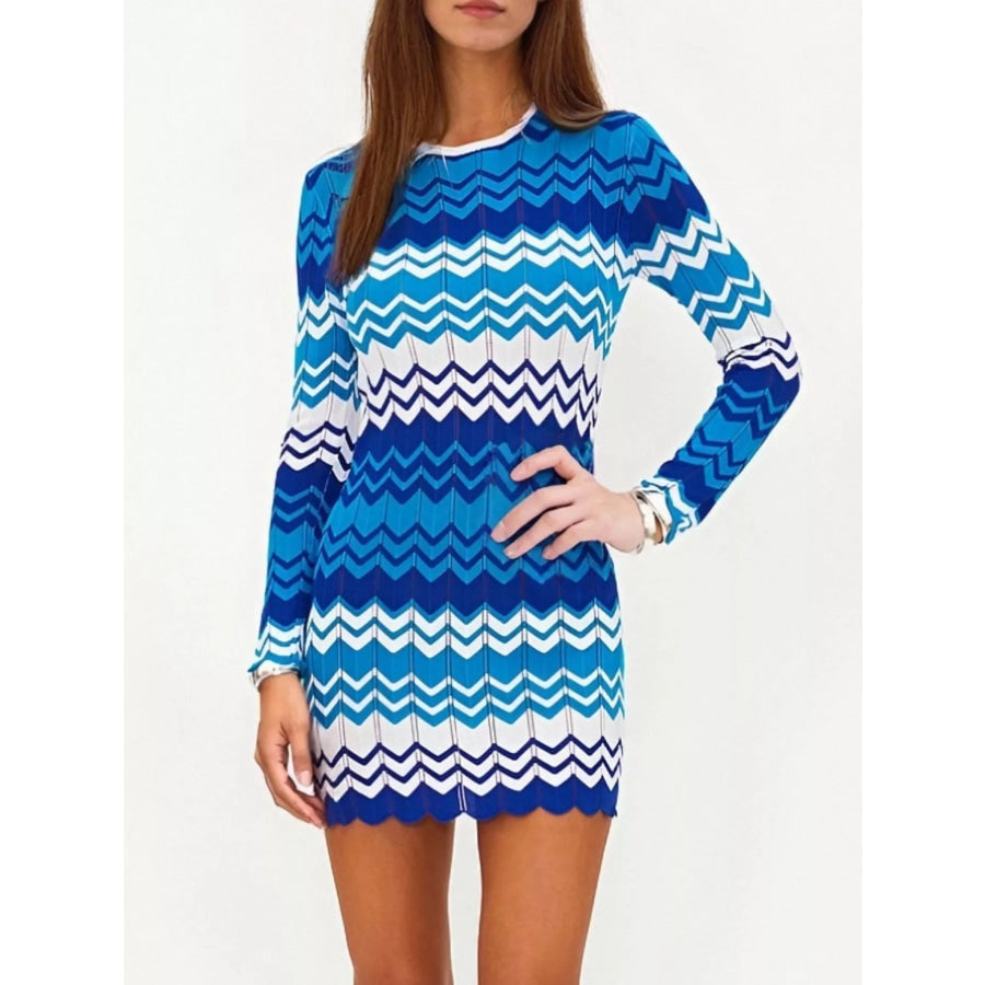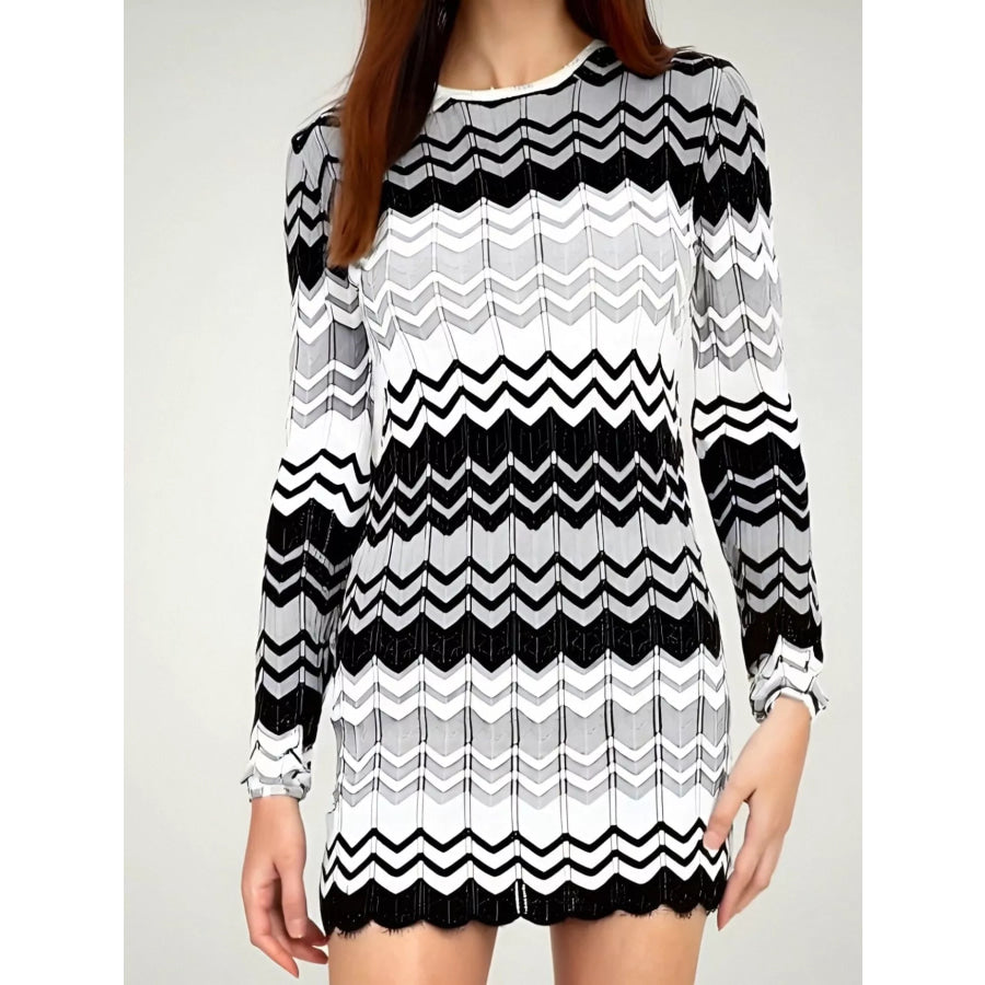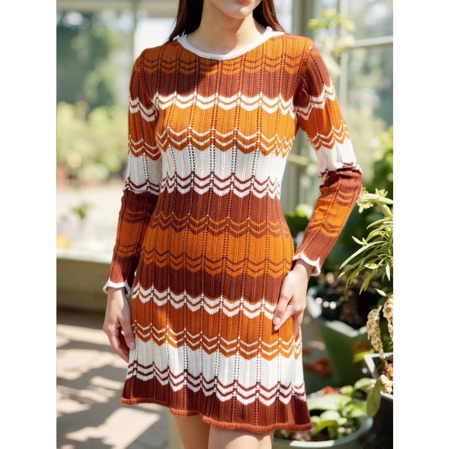 Openwork Wave Pattern Long Sleeve Sweater Dress