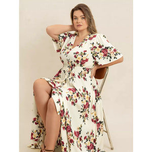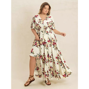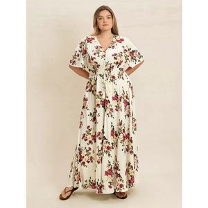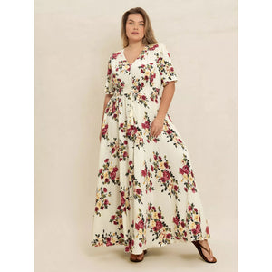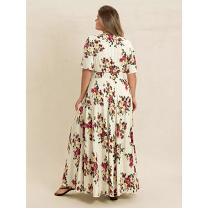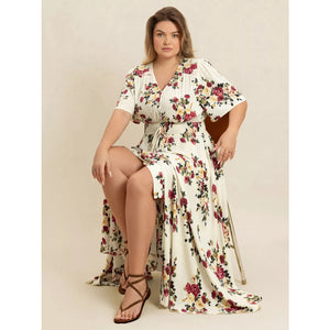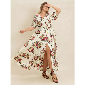 Plus Size Floral Flutter Sleeve Maxi Dress with Button Front
