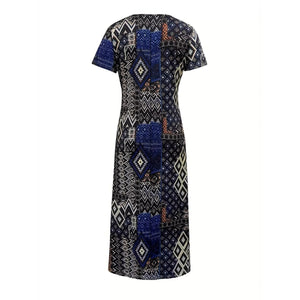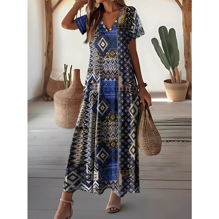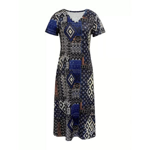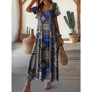 Plus Size Geometric Print V-Neck Short Sleeve Dress