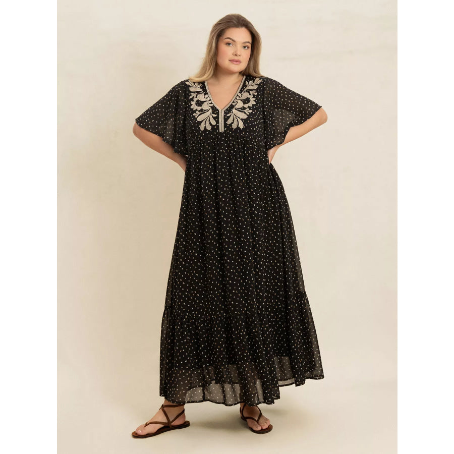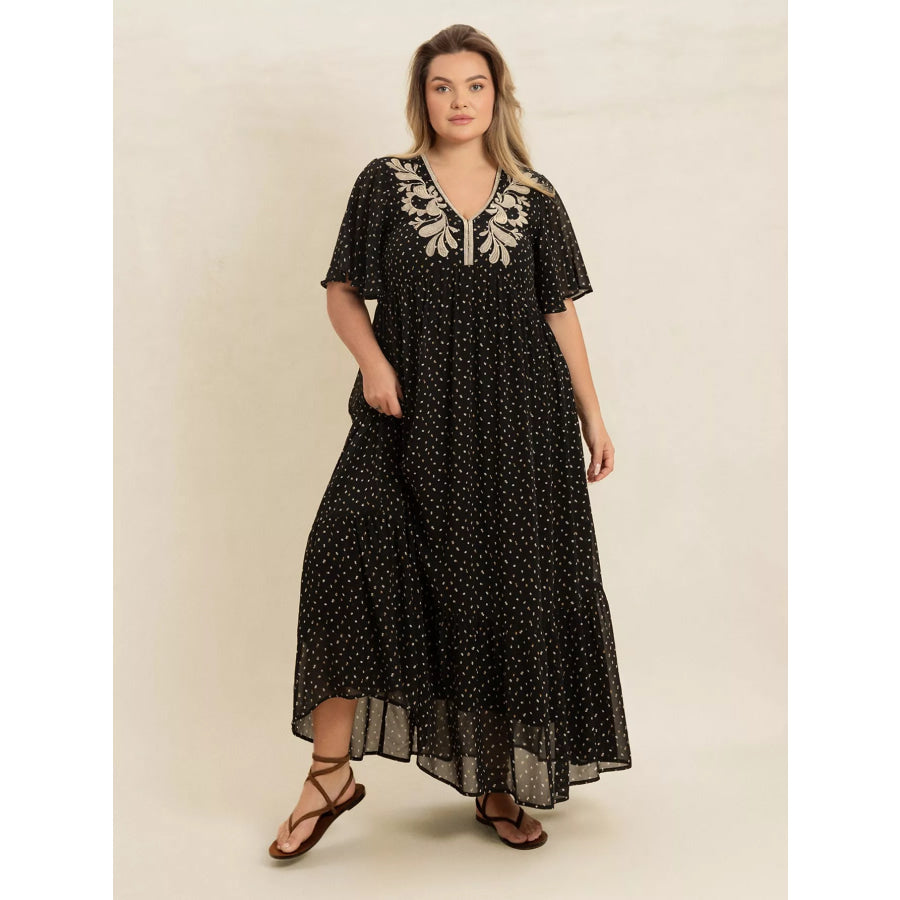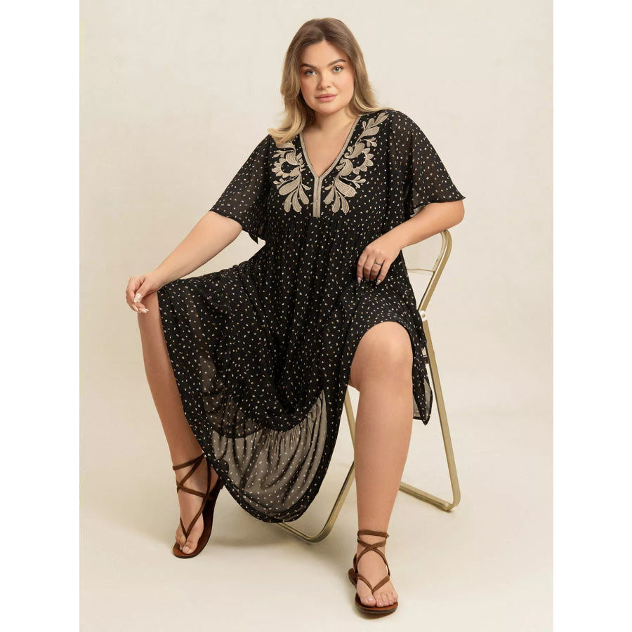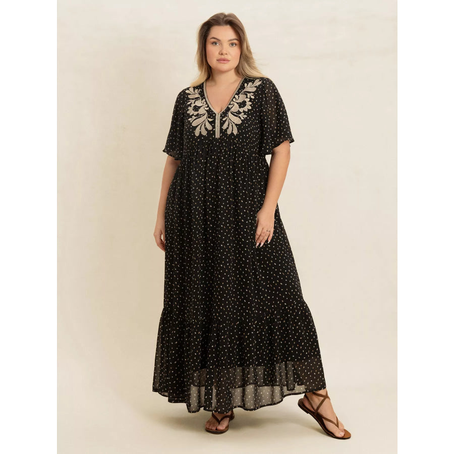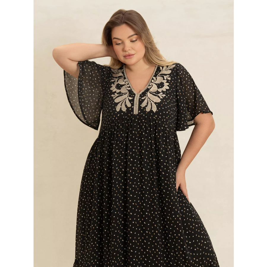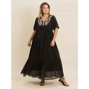 Plus Size Printed V-Neck Flutter Sleeve Maxi Dress