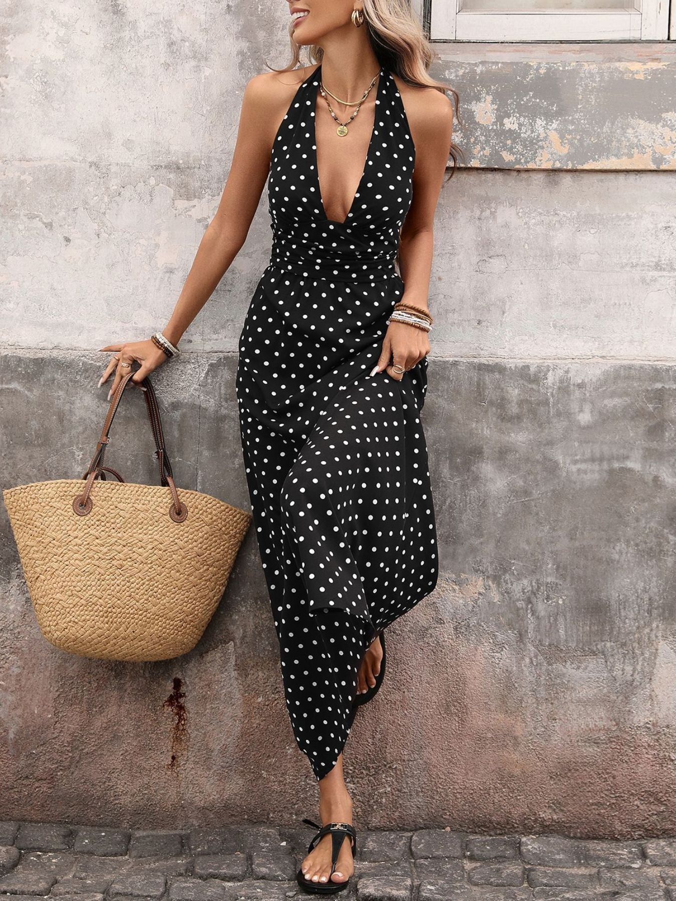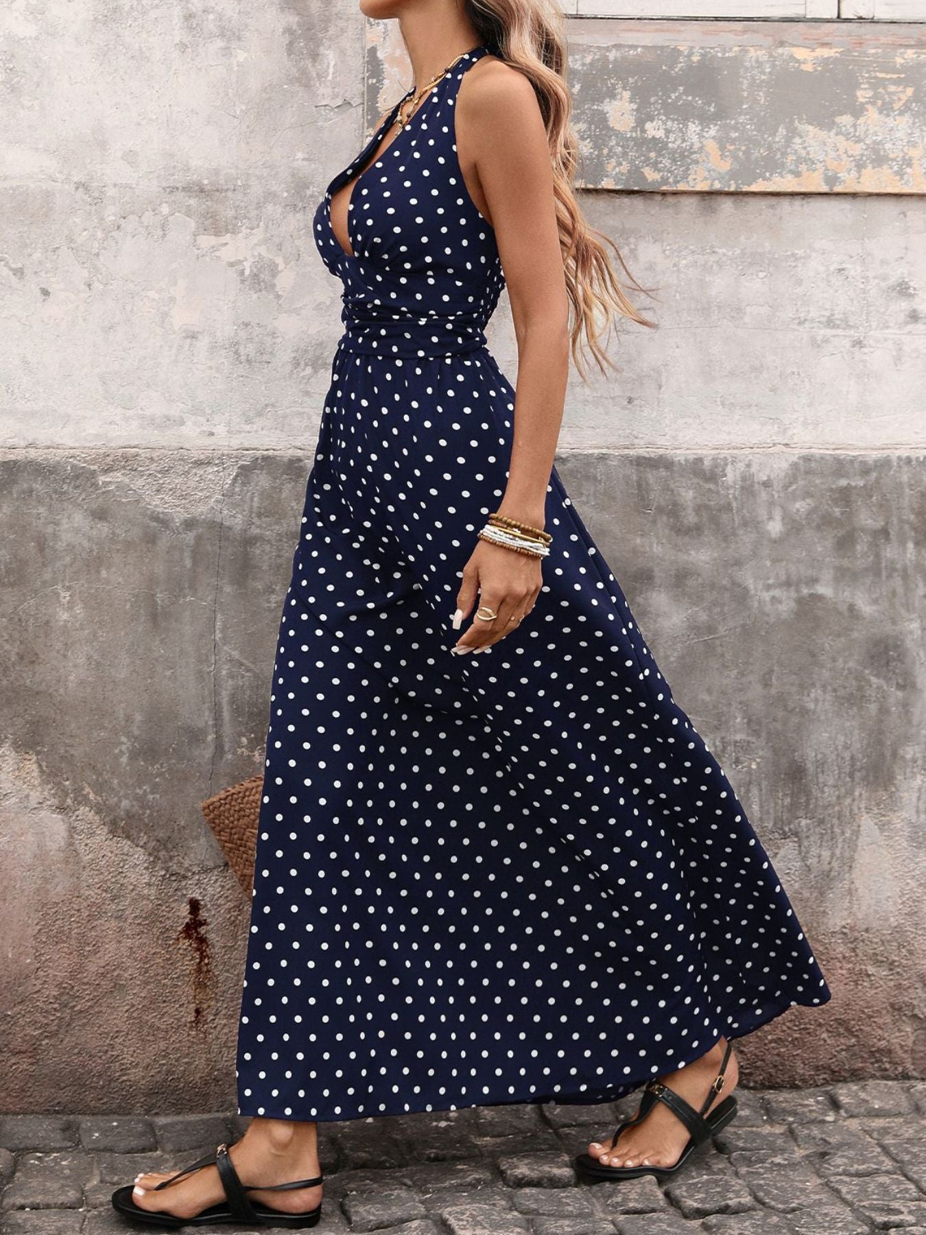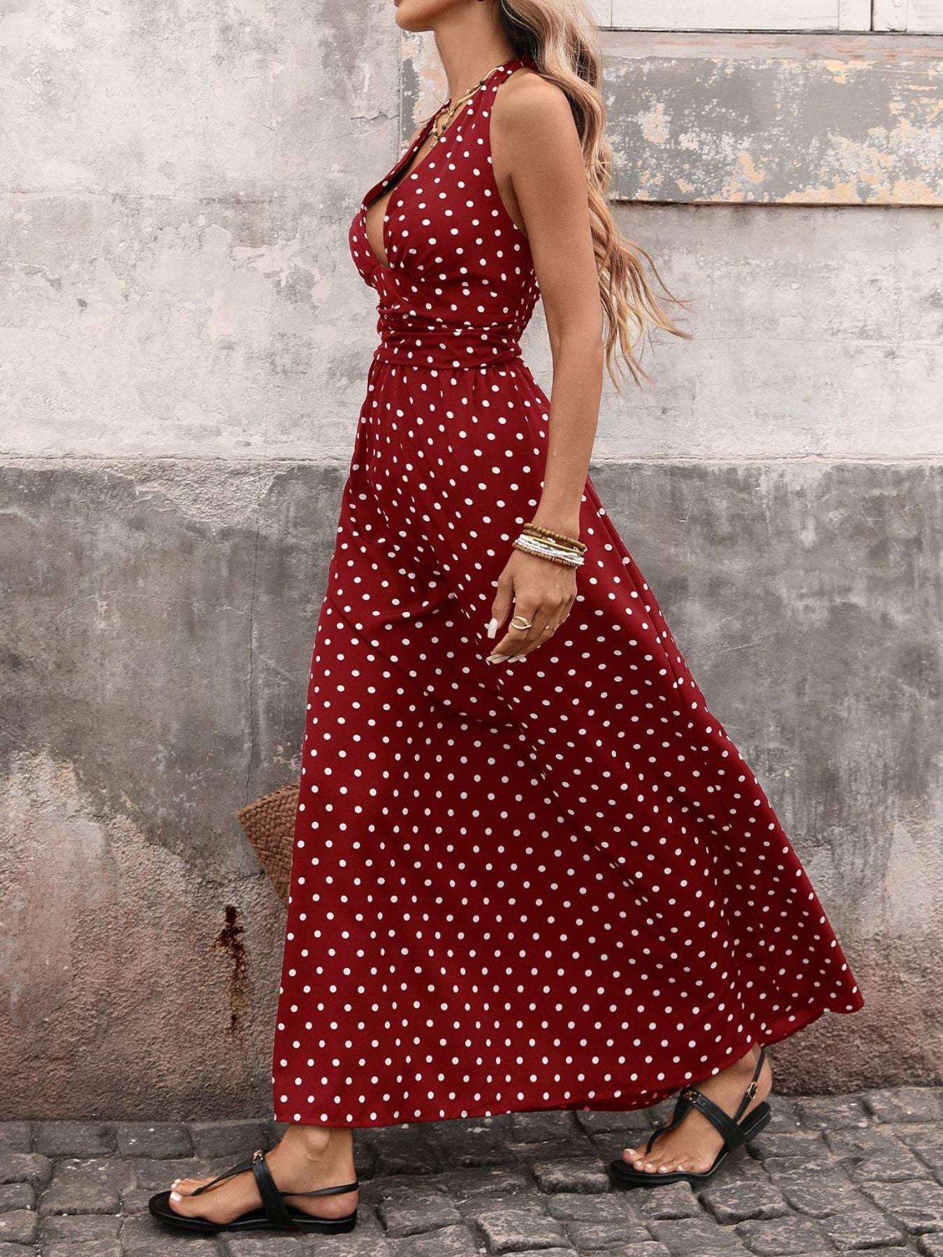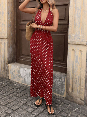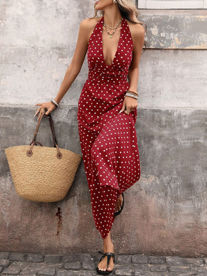 Polka Dot Halter Neck Maxi Dress