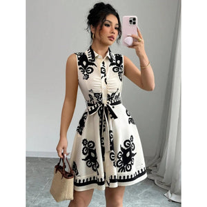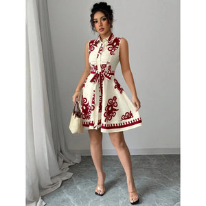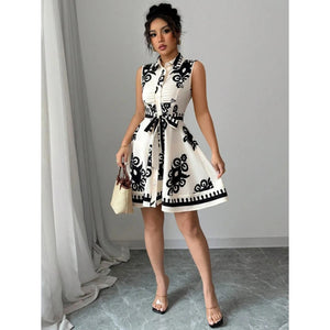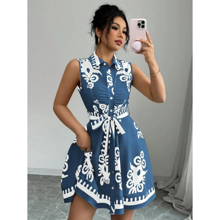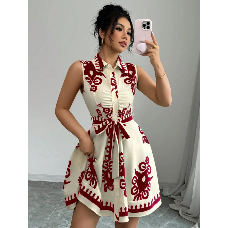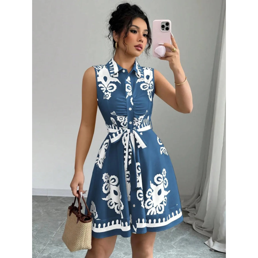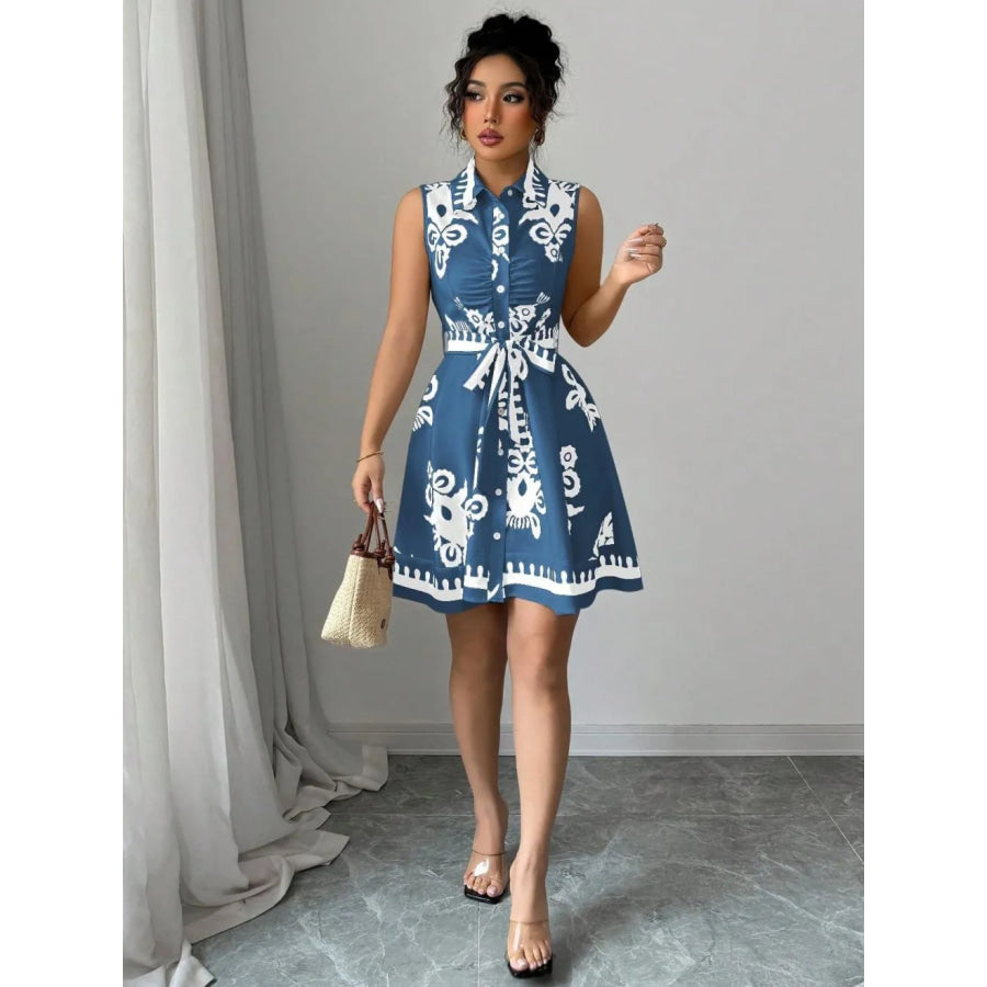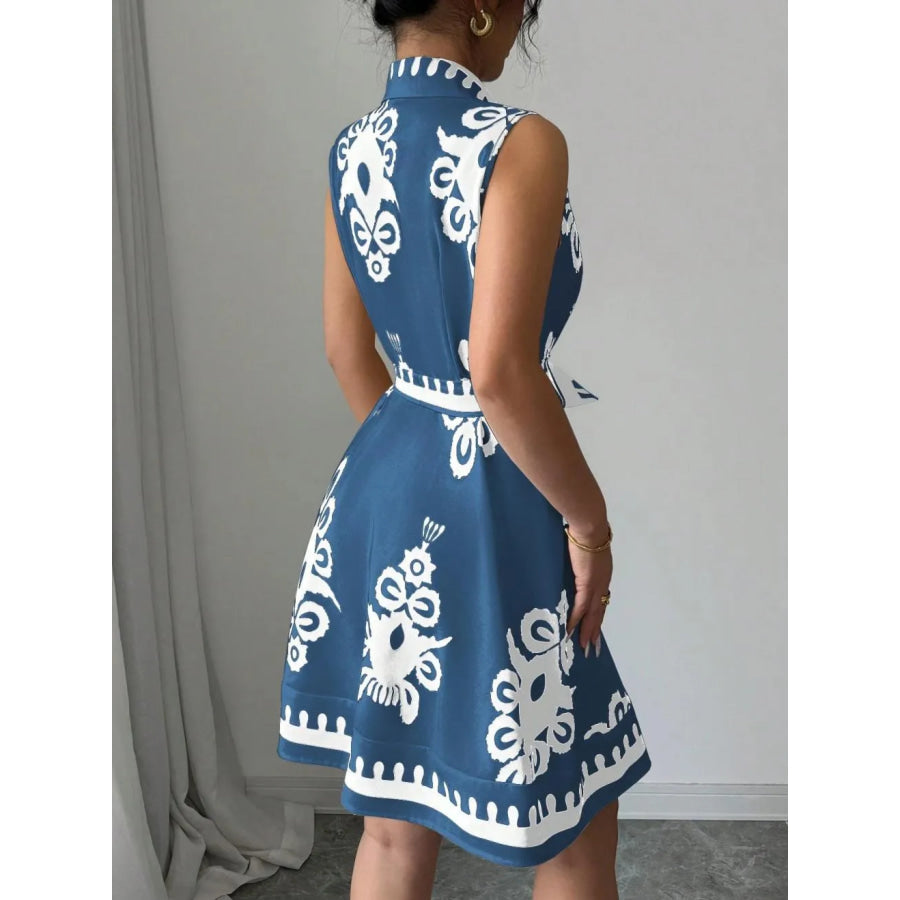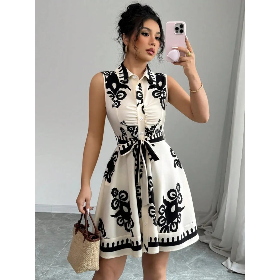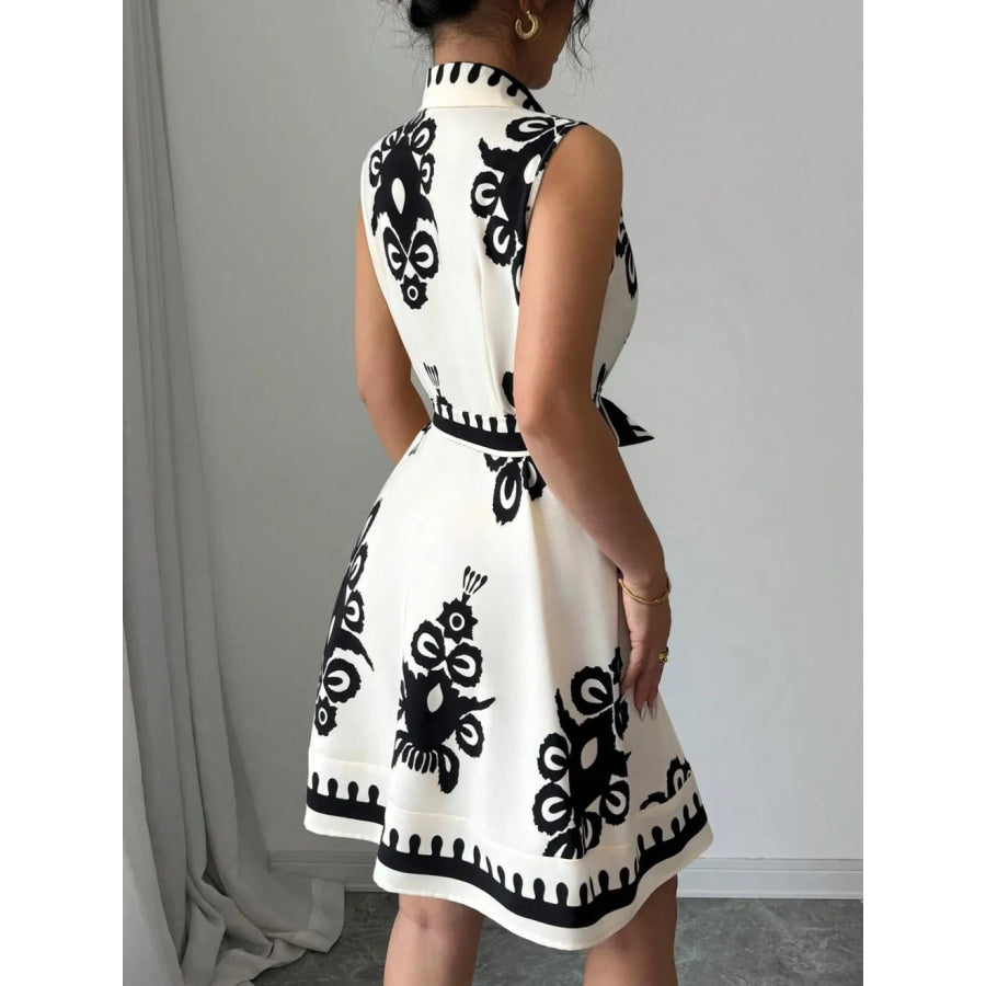 Printed Sleeveless Button Front Dress