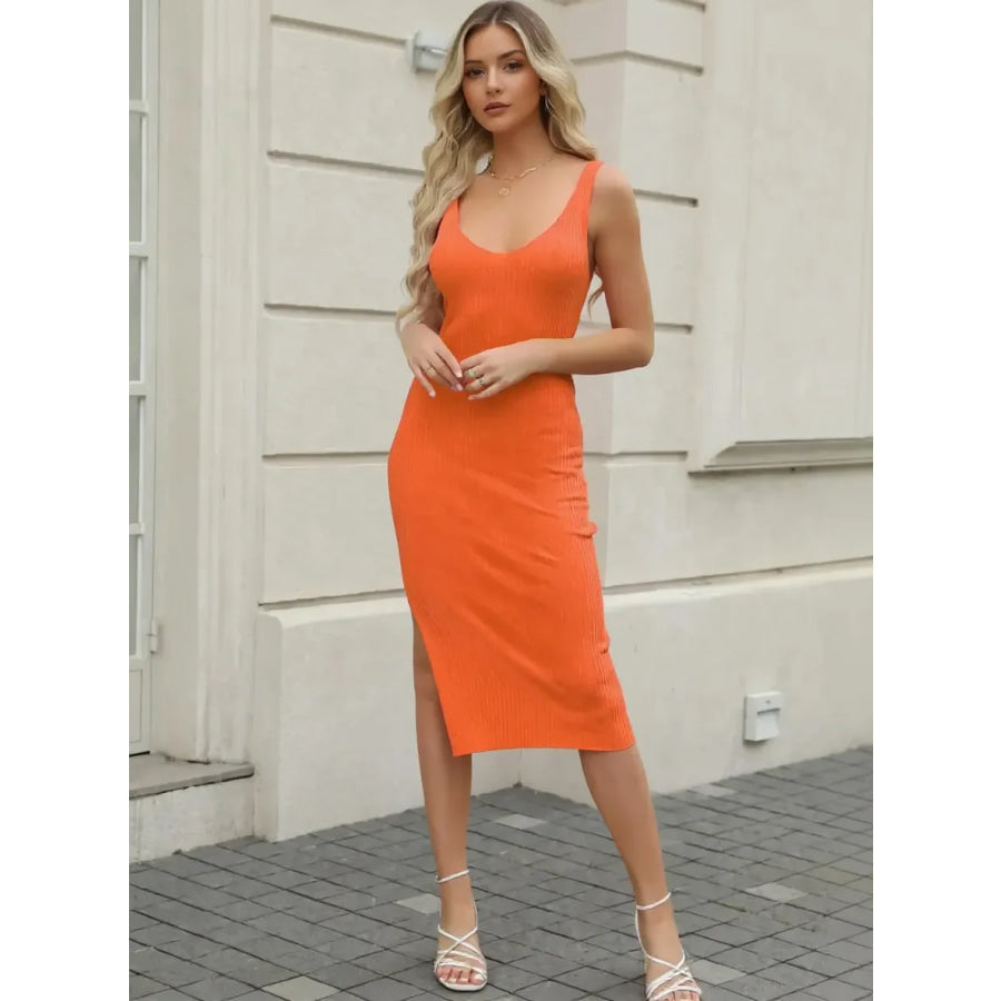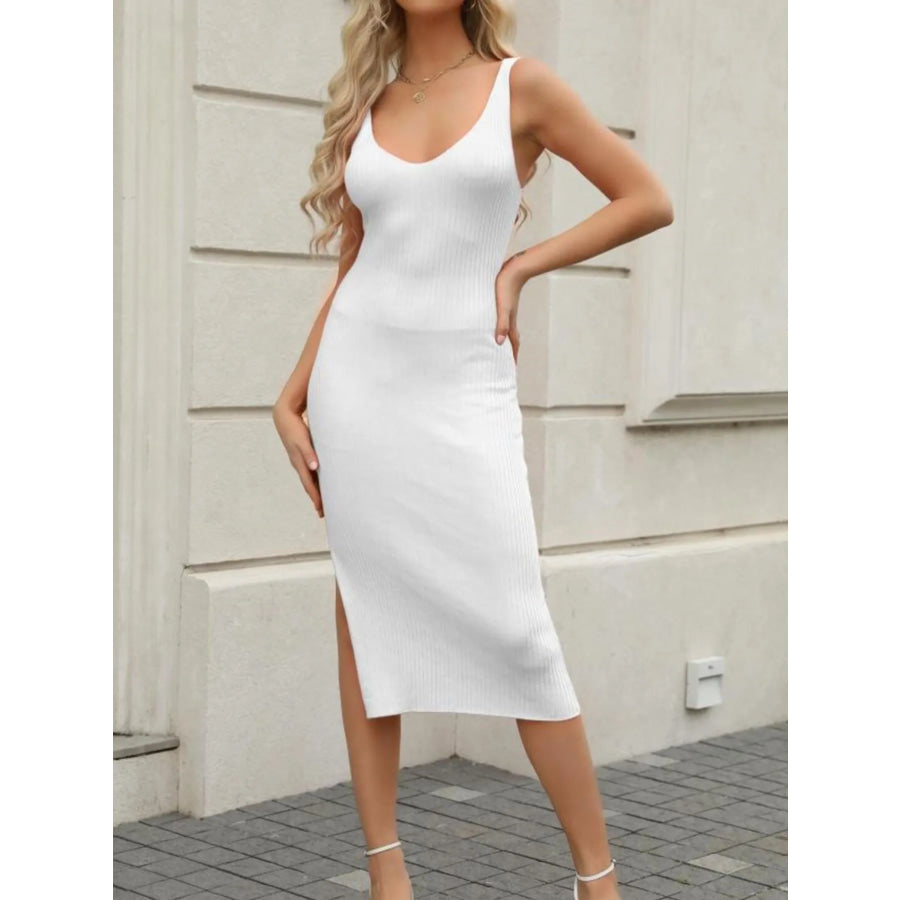 Ribbed Slit Sleeveless Knit Dress