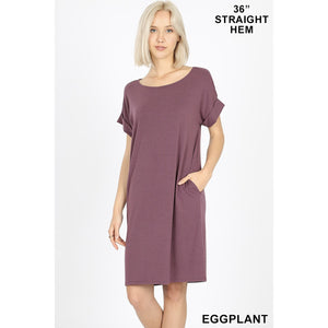 PREMIUM FABRIC ROLLED SHORT SLEEVE ROUND NECK DRESS