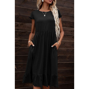 S: length 39 in, shoulder 14 in, bust 34 in, waist 27 in, sleeve length 4 in
