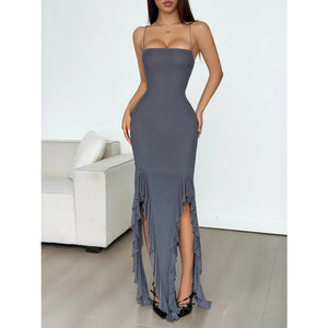 Ruffle Hem Lace Up Bodycon Cami Dress