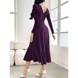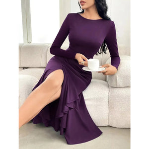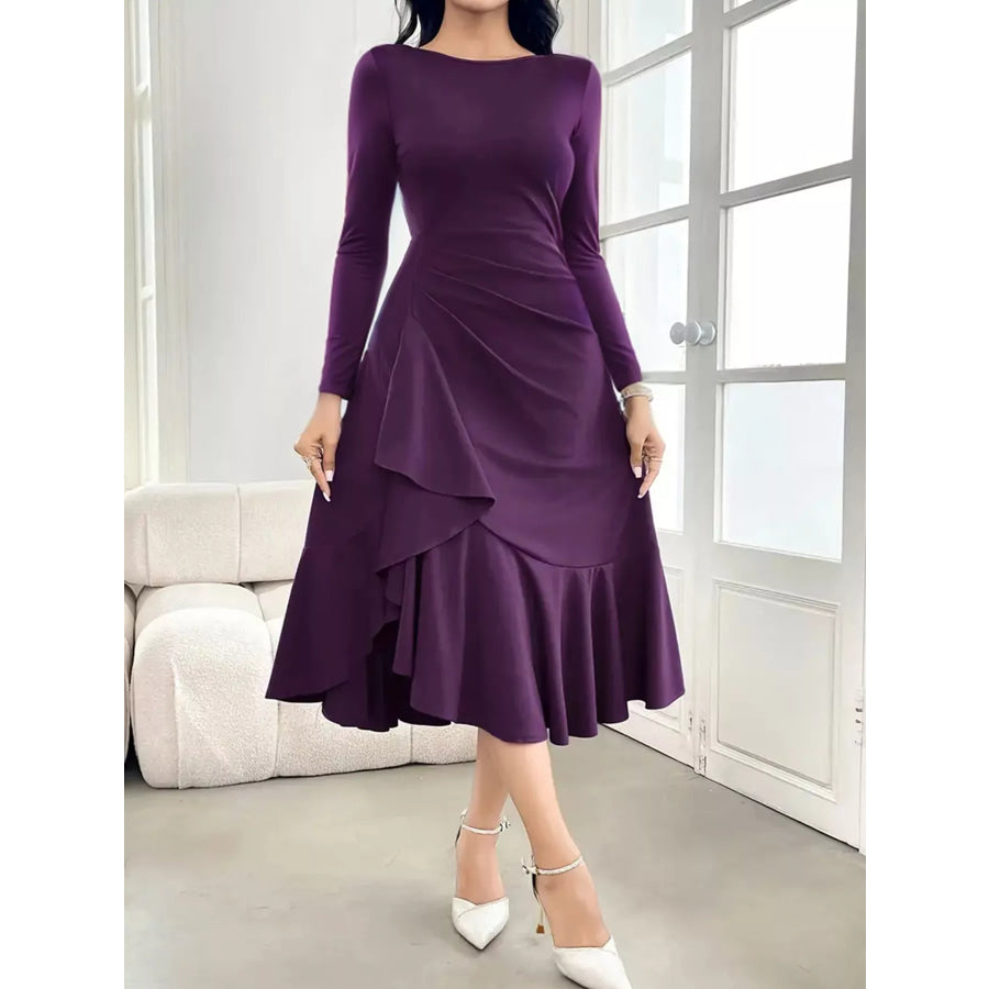 Ruffle Hem Long Sleeve Midi Dress