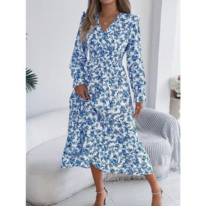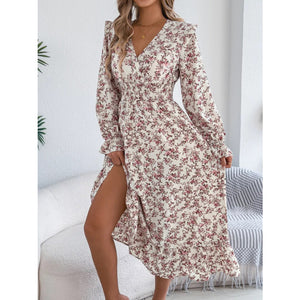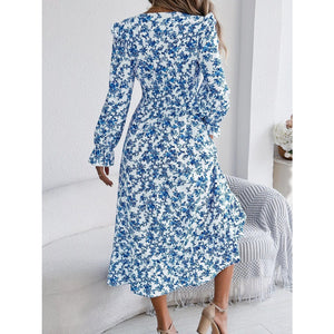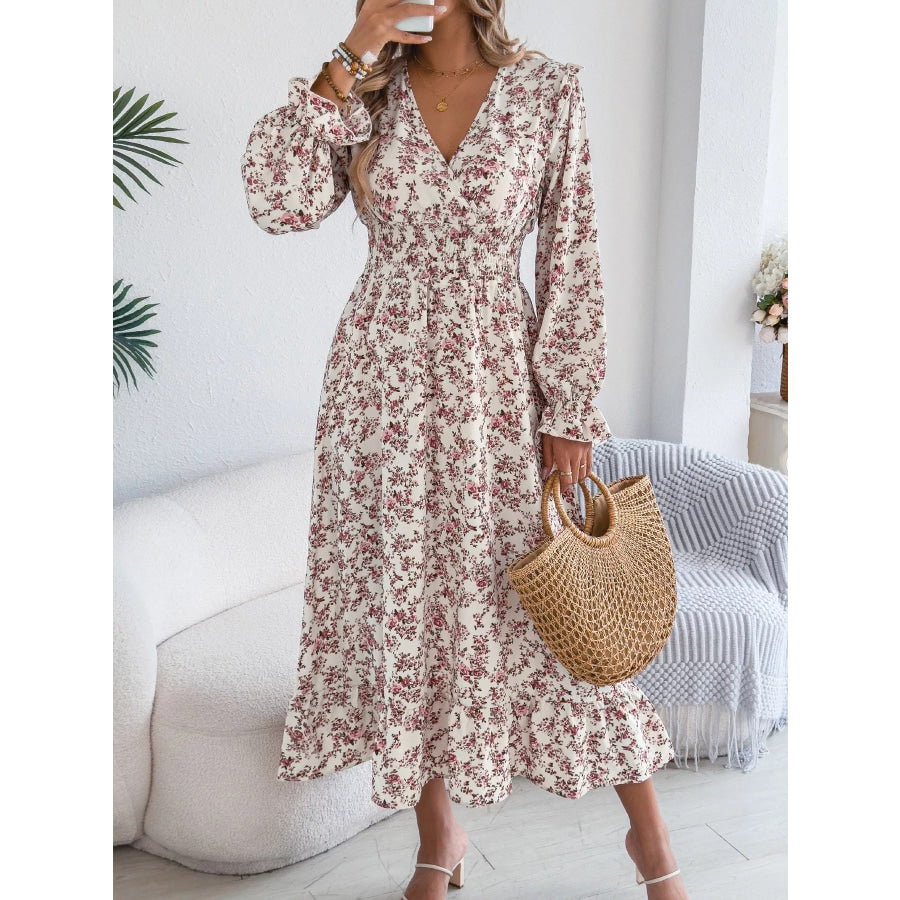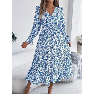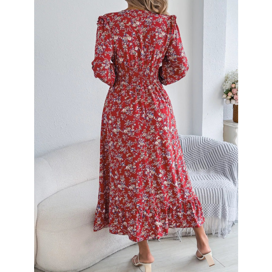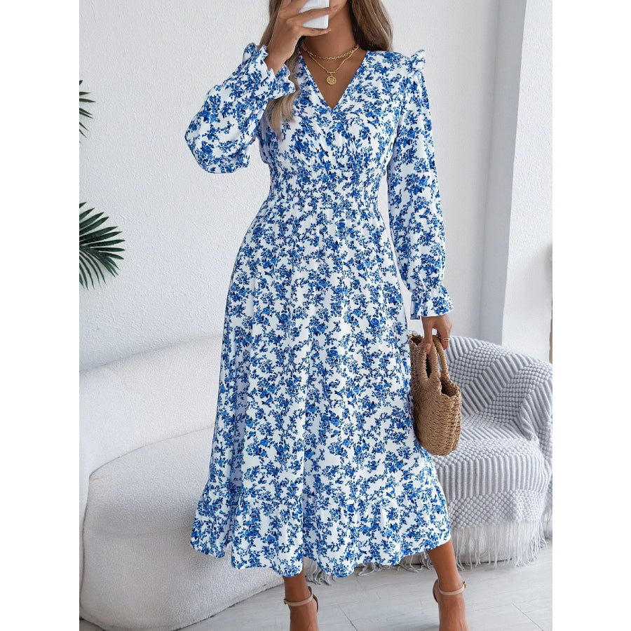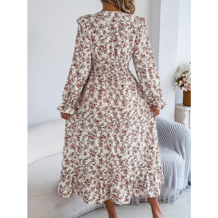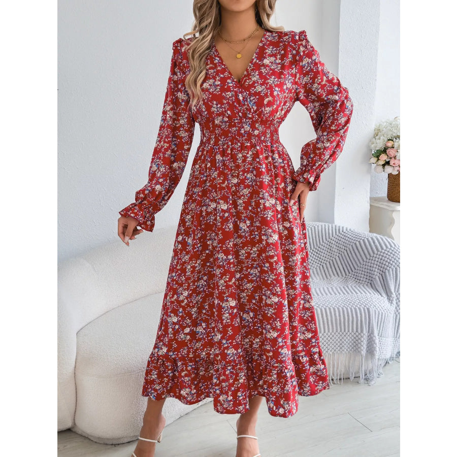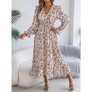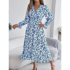 Ruffled Floral V-Neck Flounce Sleeve Dress