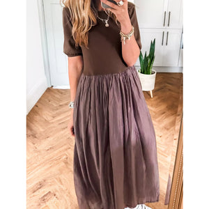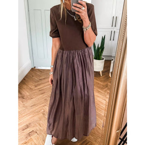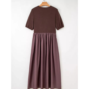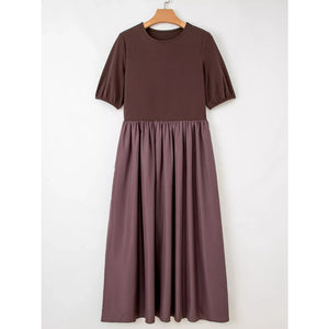 Short Sleeve Knit Top Patchwork Pleated Dress