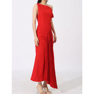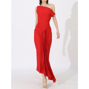 Single Shoulder Pleated Dress