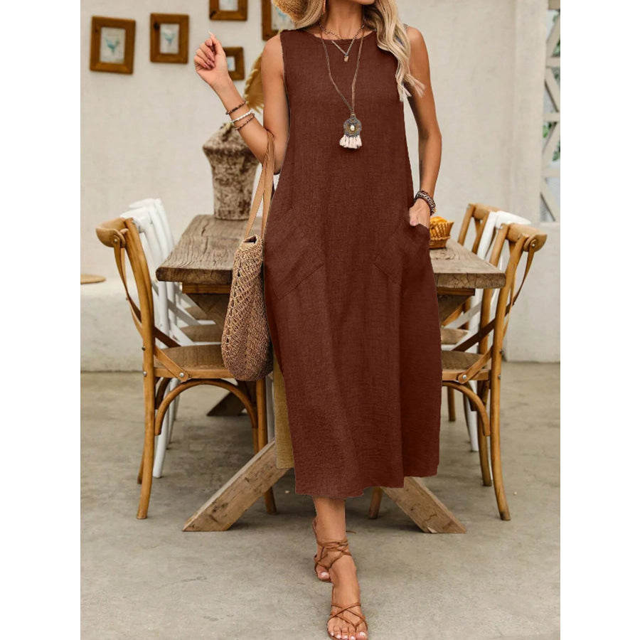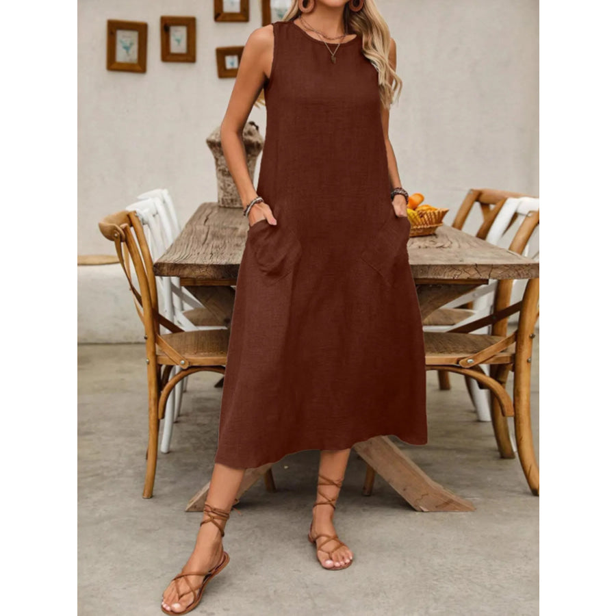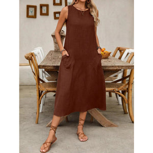 Sleeveless Midi Dress with Pockets