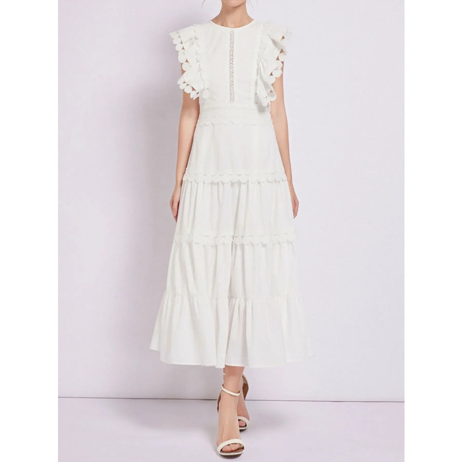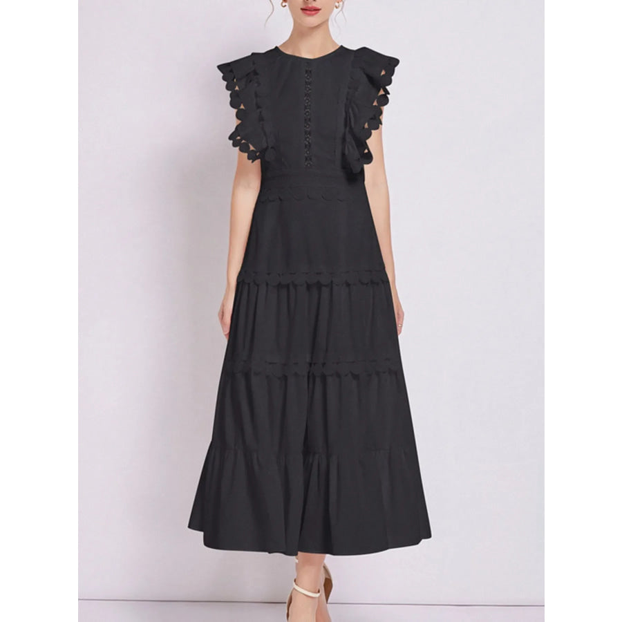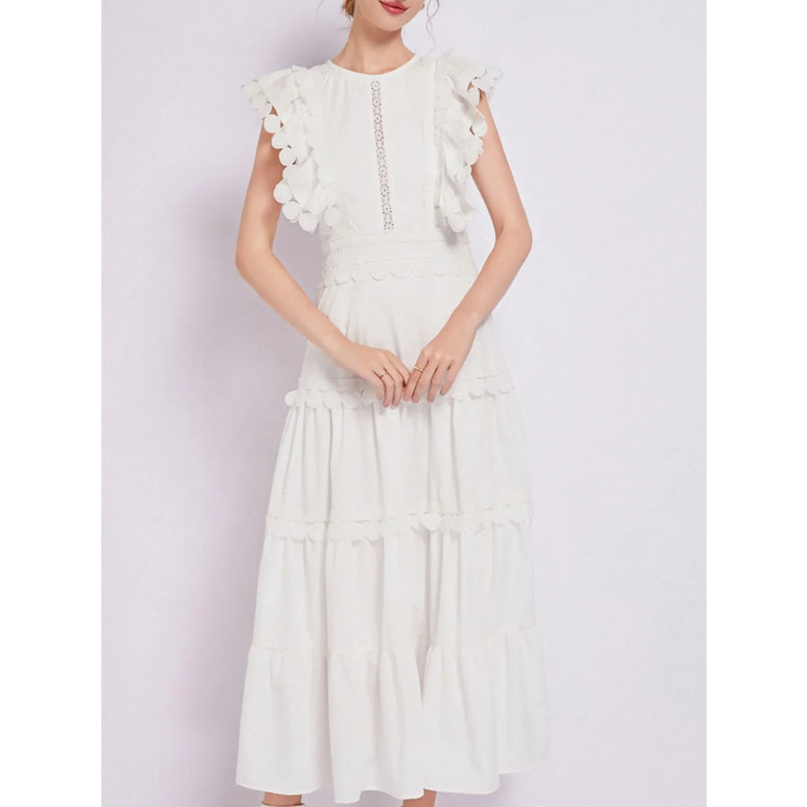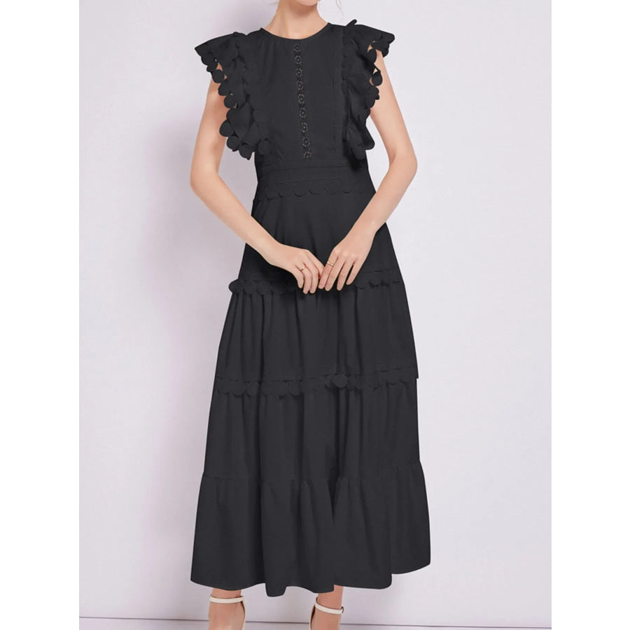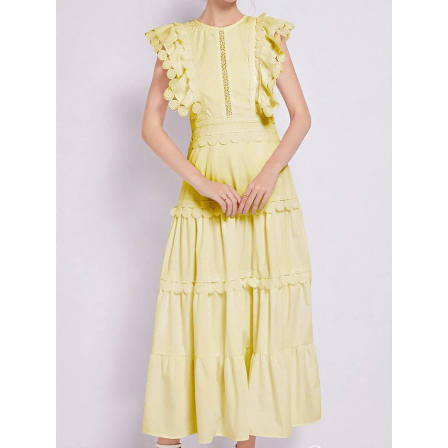 Sleeveless Ruffled Tiered Dress with Embroidered Trim
