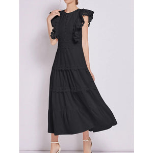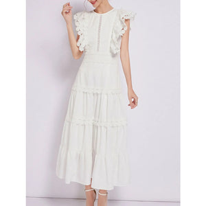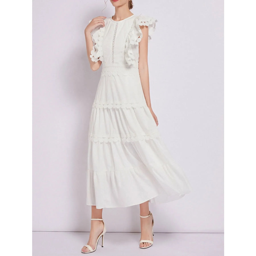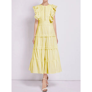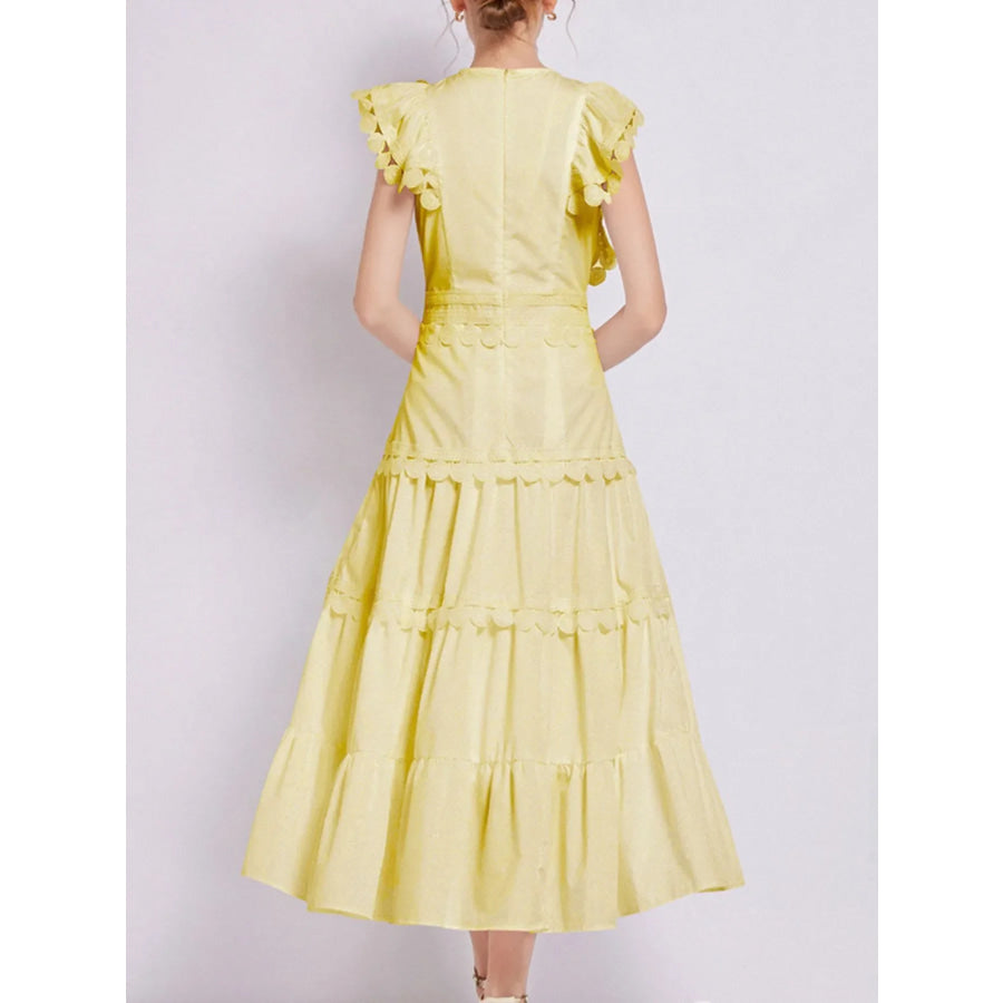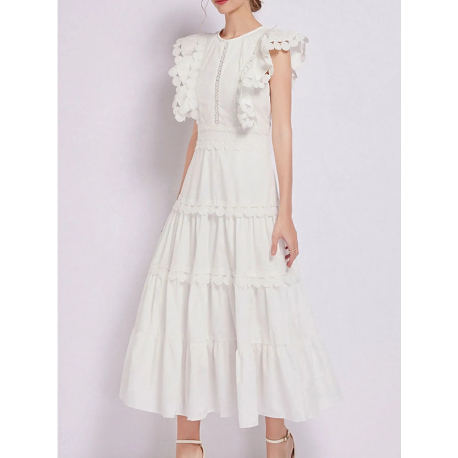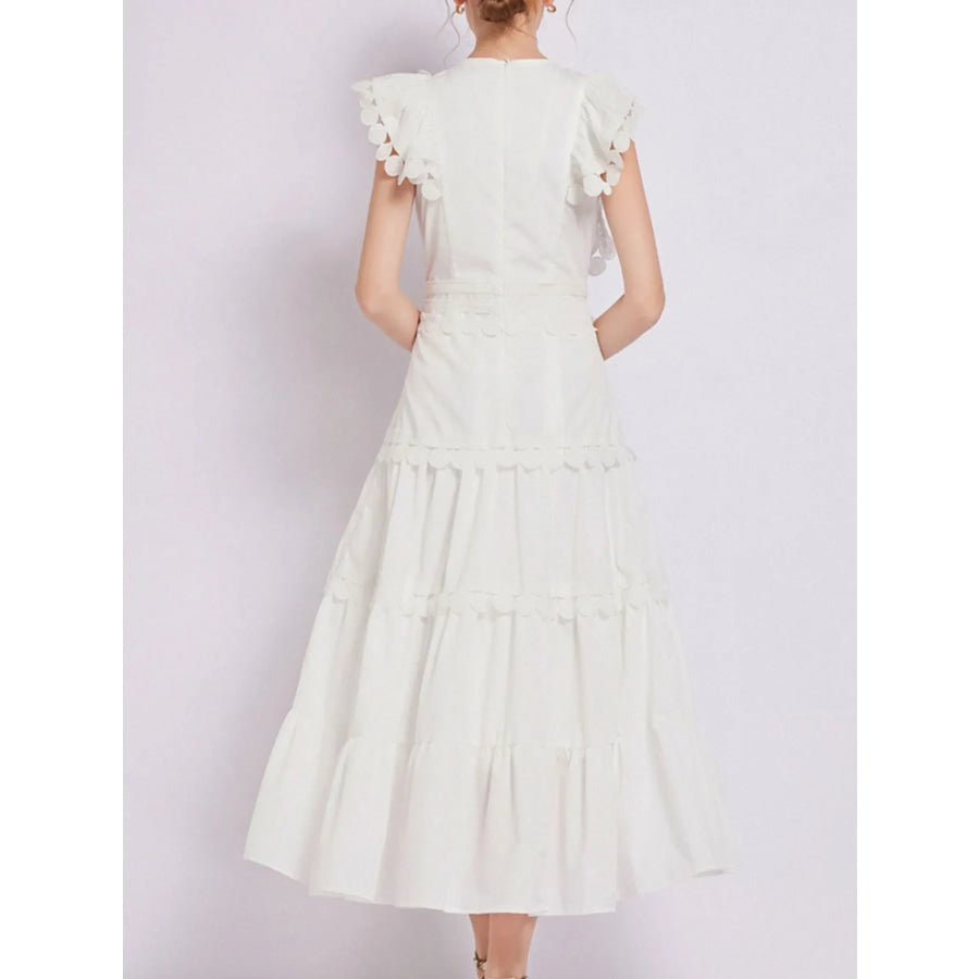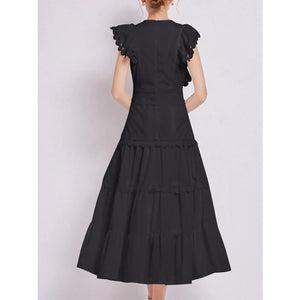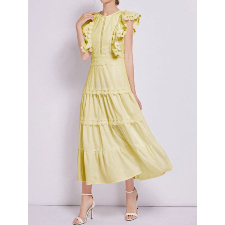 Sleeveless Ruffled Tiered Dress with Embroidered Trim