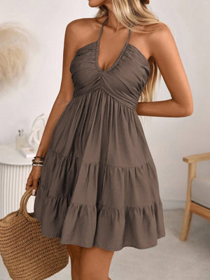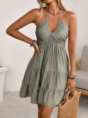 Smocked Halter Neck Tiered Dress