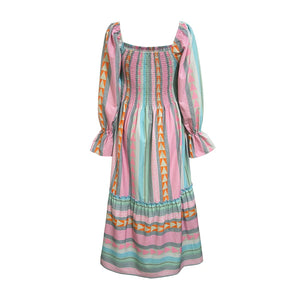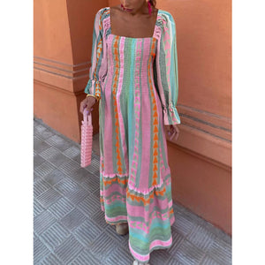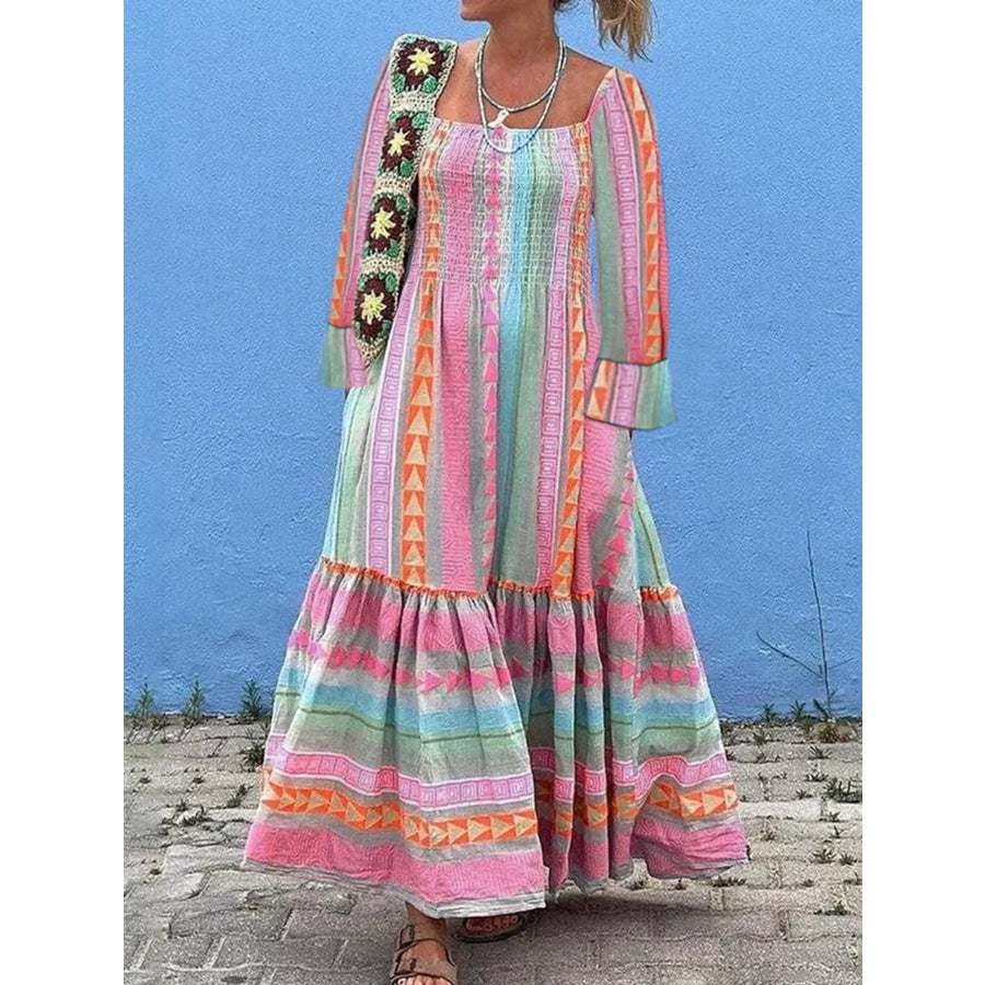 Smocked Square Neck Flounce Sleeve Maxi Dress