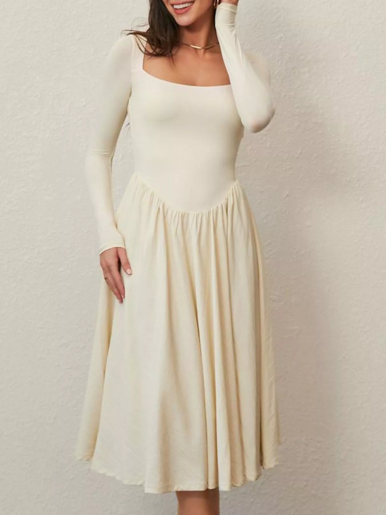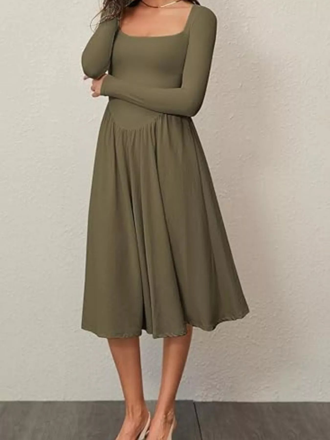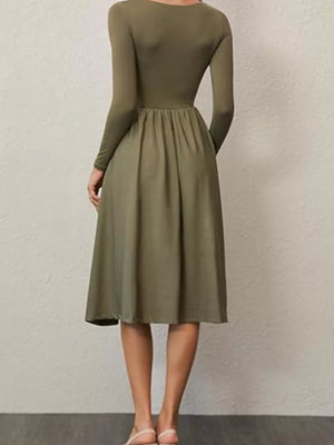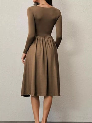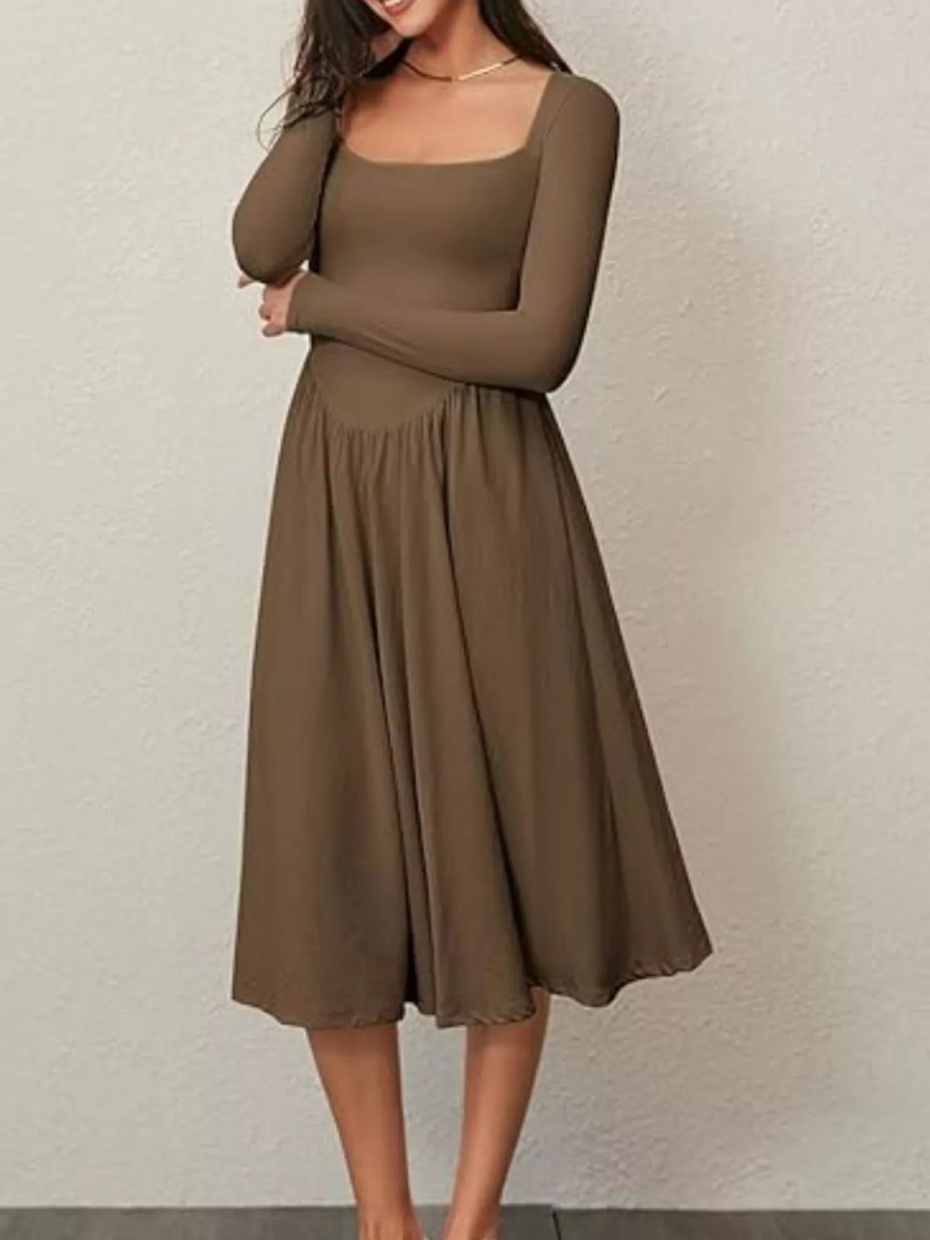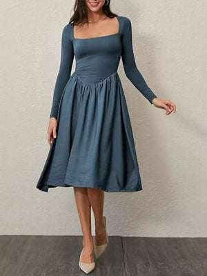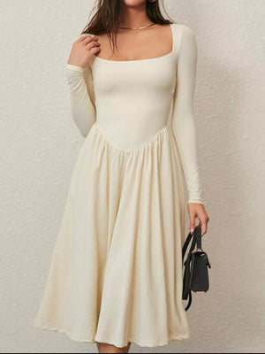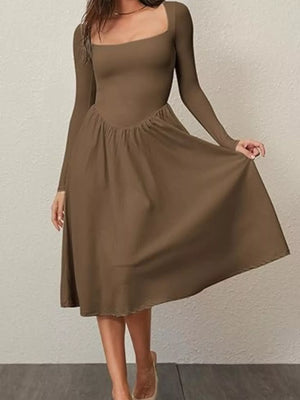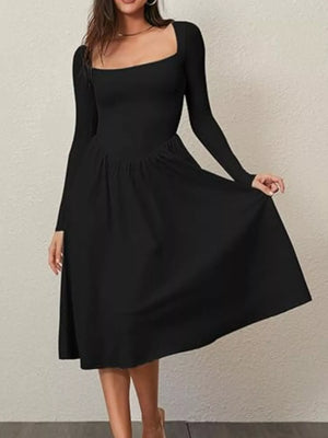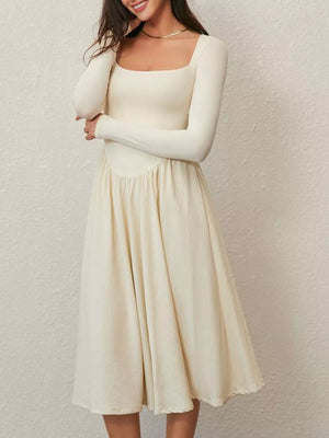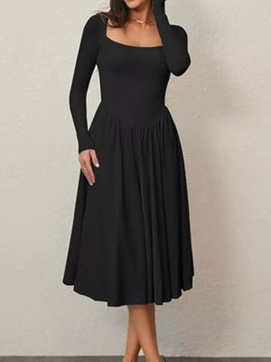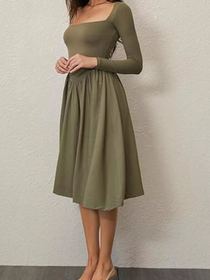 Square Neck Long Sleeve Midi Dress