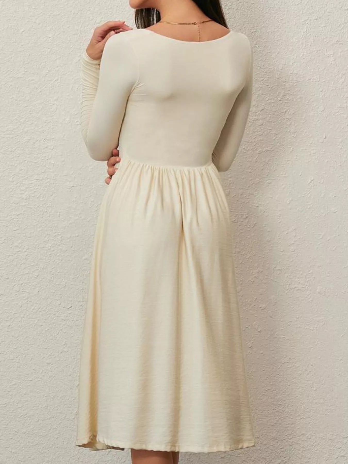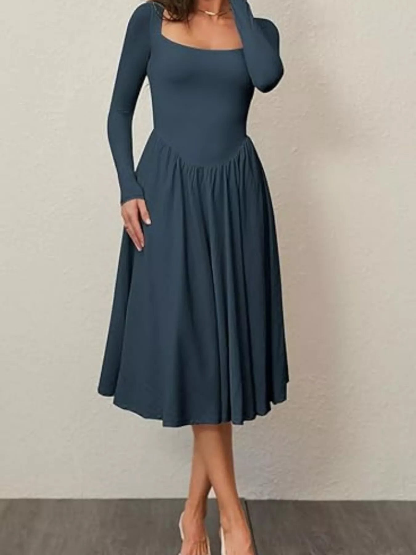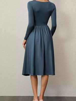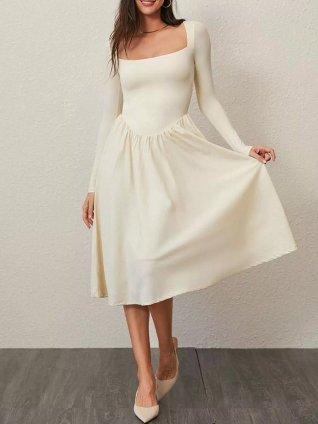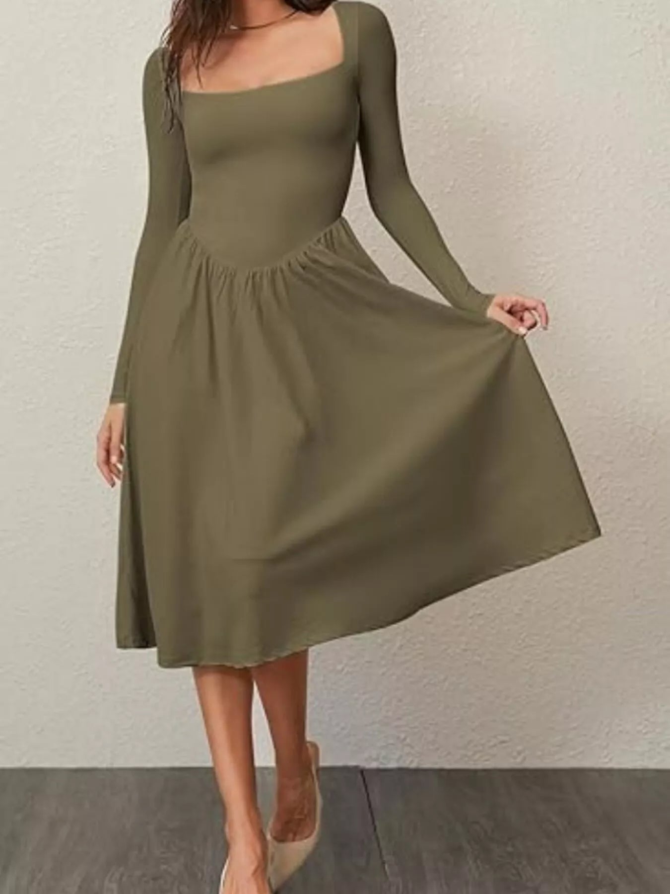 Square Neck Long Sleeve Midi Dress
