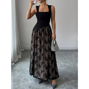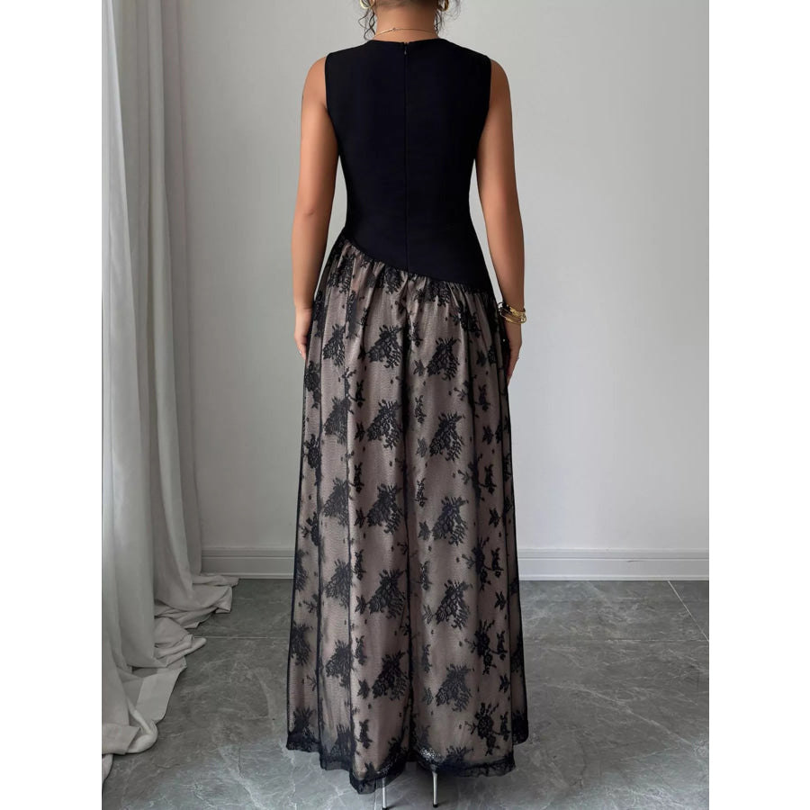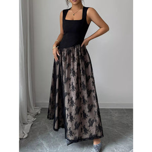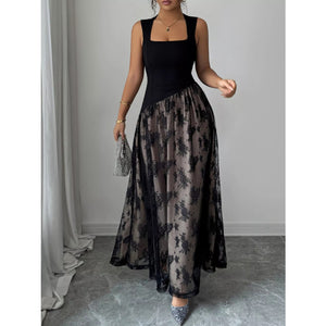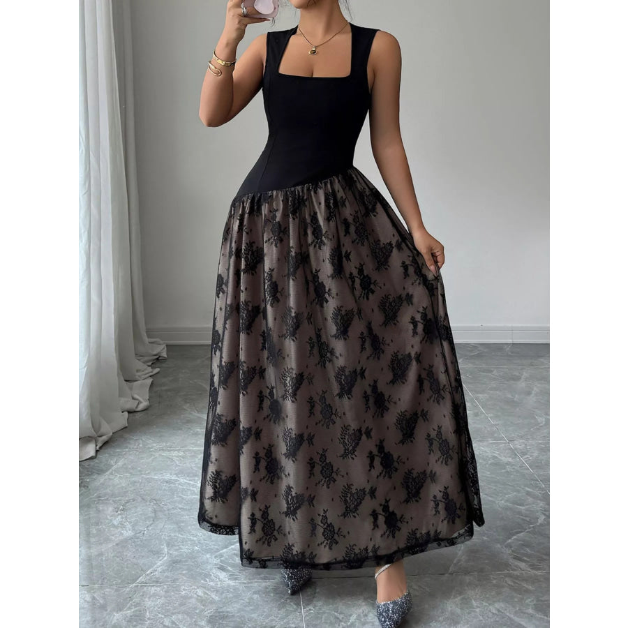 Square Neck Sleeveless Lace Maxi Dress