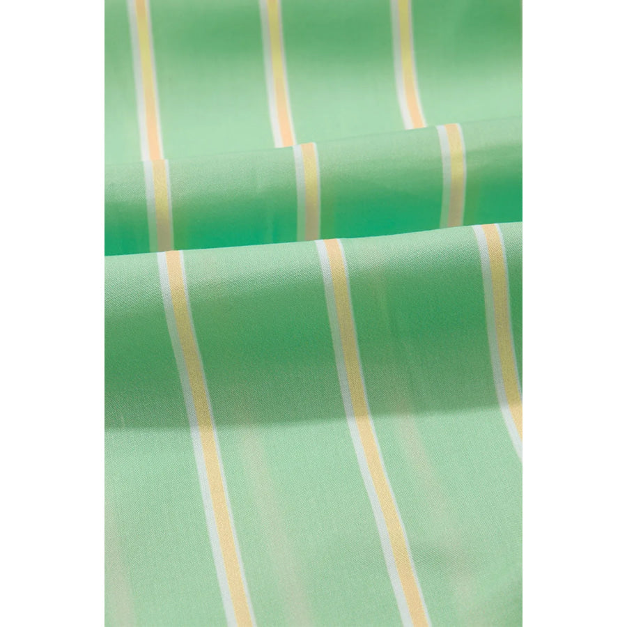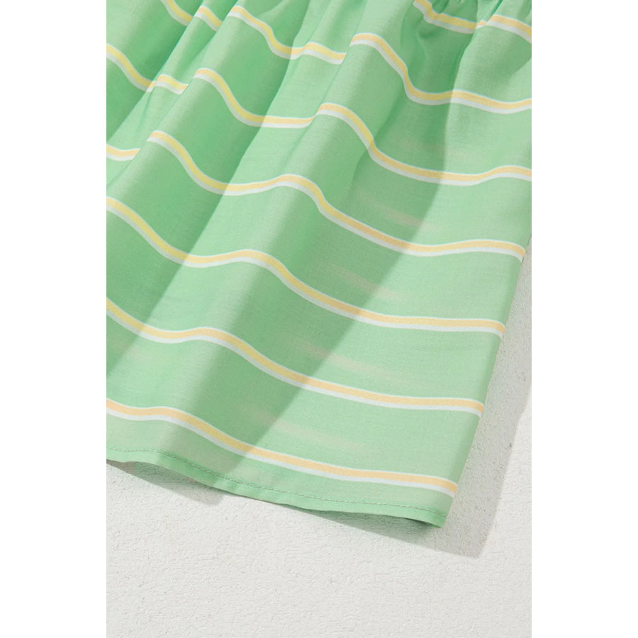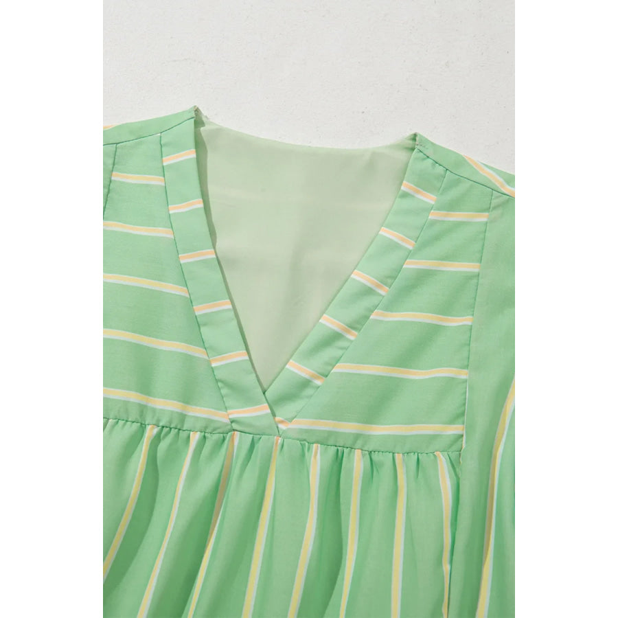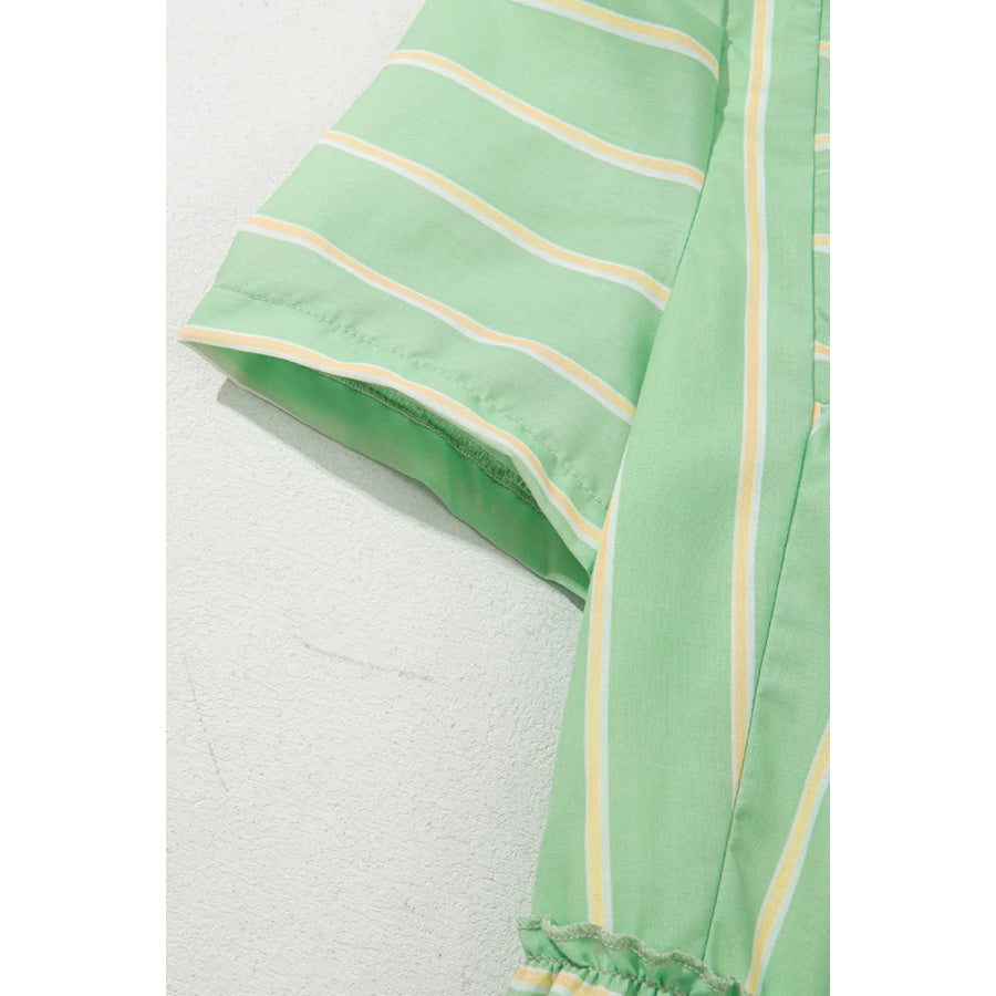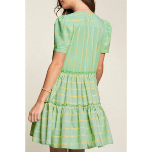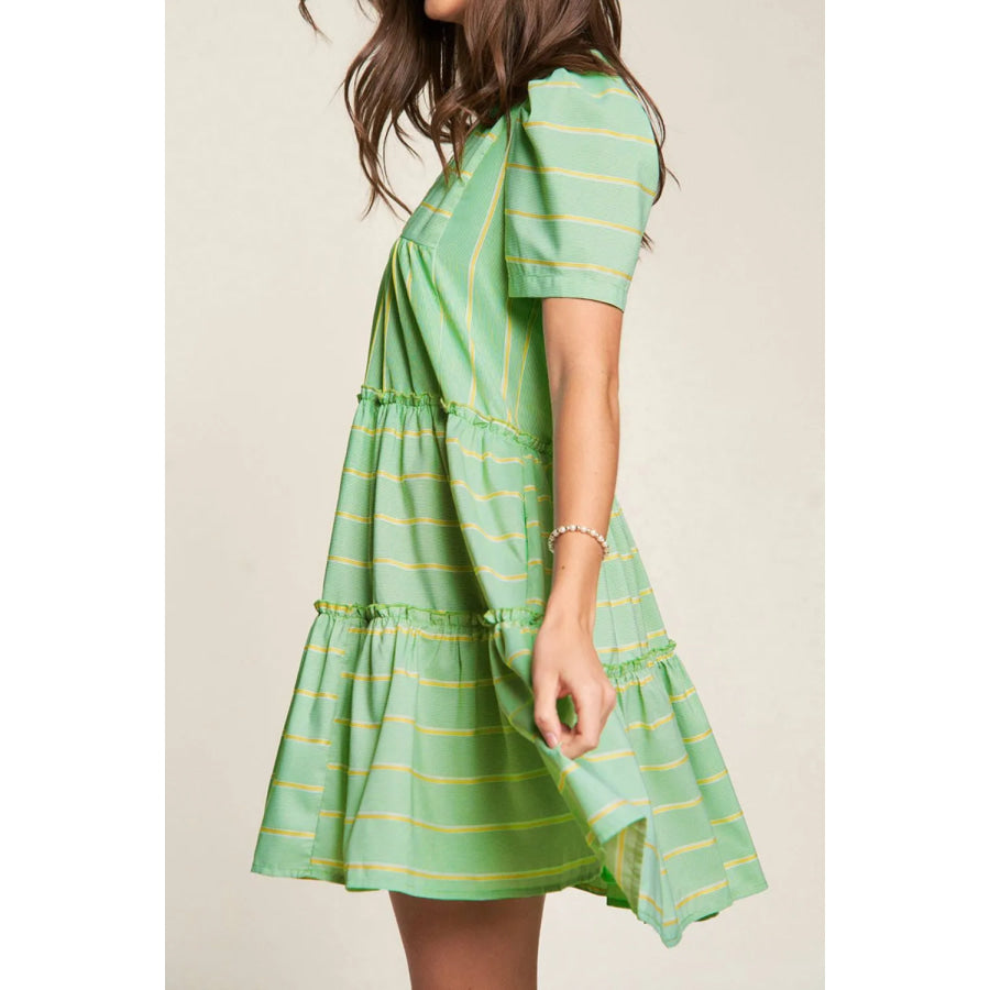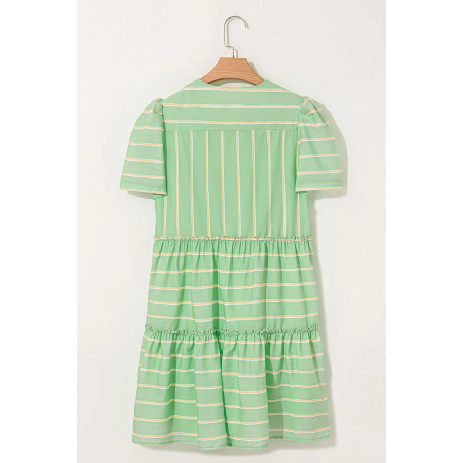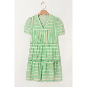 Stripe V Neck Short Sleeve Frilled Detail Dress