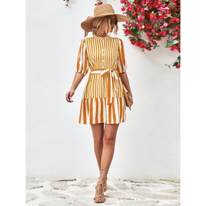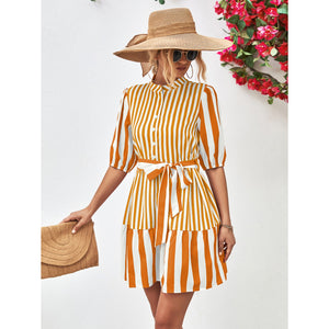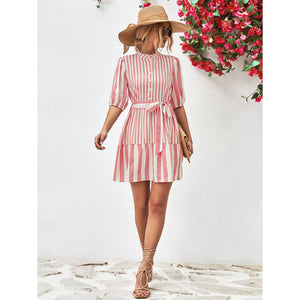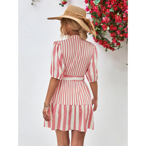 Striped Half Sleeve Tie Waist Mini Dress