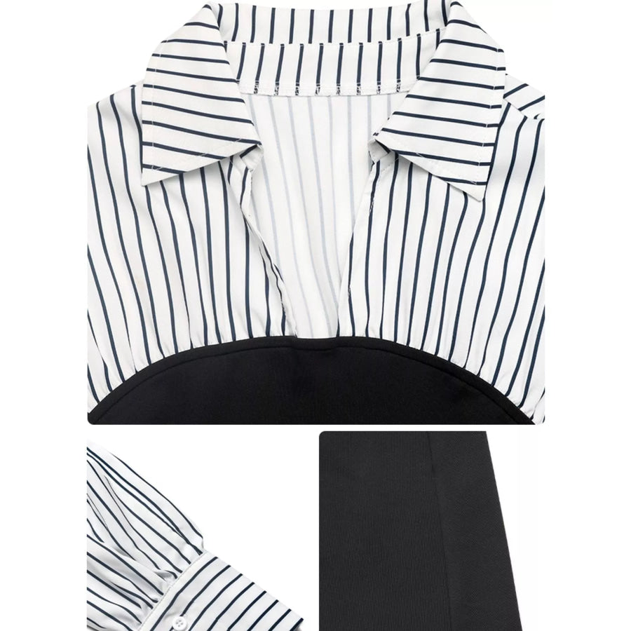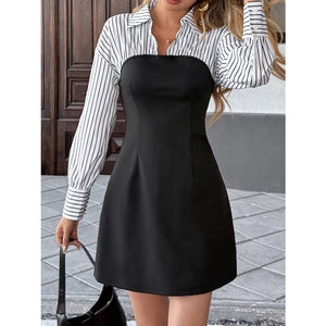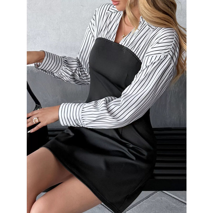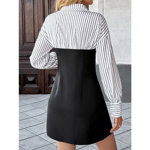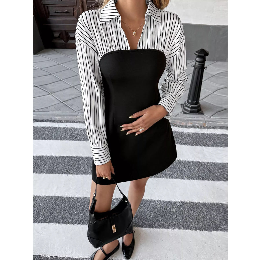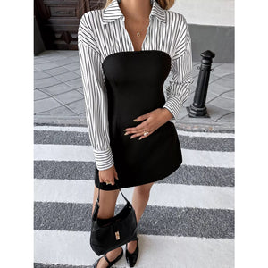 Striped Shirt Panel Bodycon Mini Dress
