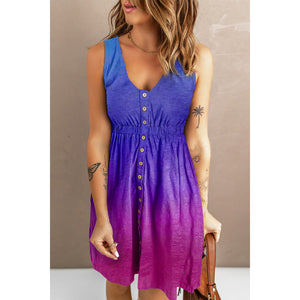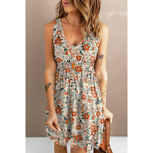 This sleeveless button-down sunflower print dress can be styled with a long cardigan for layering, or wear it alone for a simple summer look. The side slit on this dress is flattering and easy to wear.