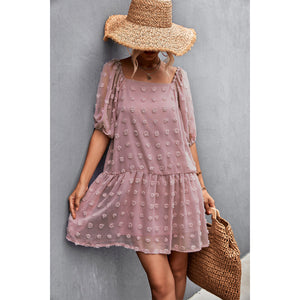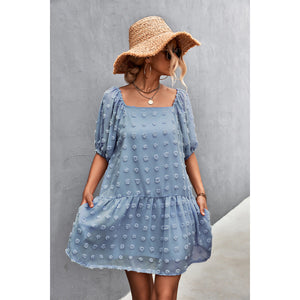 Swiss Dot Square Neck Half Balloon Sleeve Dress