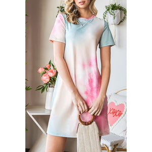 Tie-Dye Round Neck Short Sleeve Slit Dress