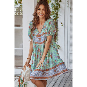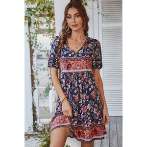 Tie Neck Short Sleeve Mini Dress