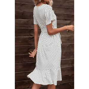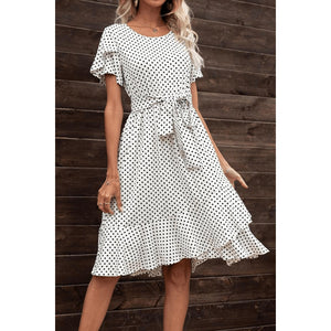 Tie Waist Petal Sleeve Ruffle Hem Dress