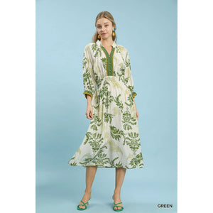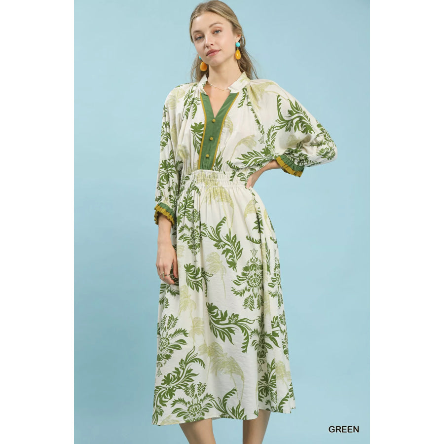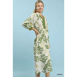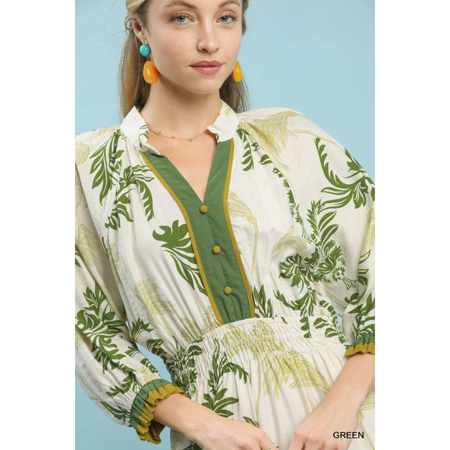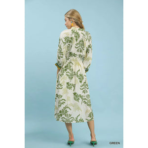 Umgee Tropical Print Button Detail Midi Dress