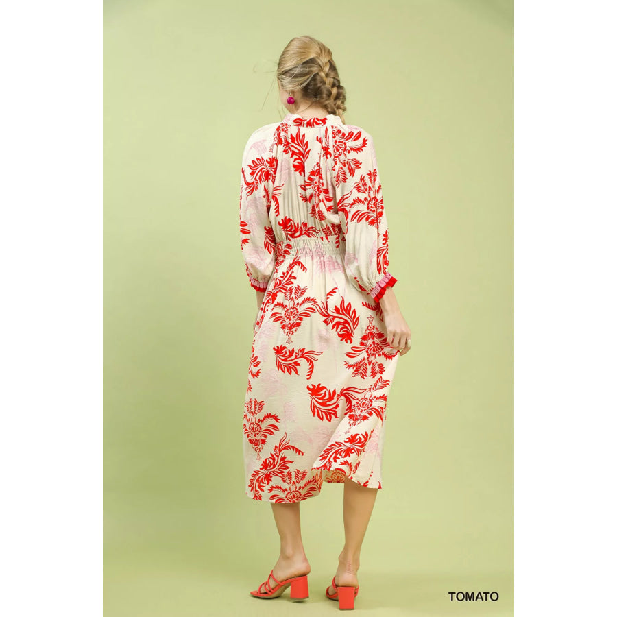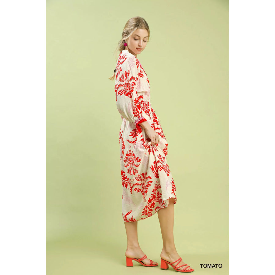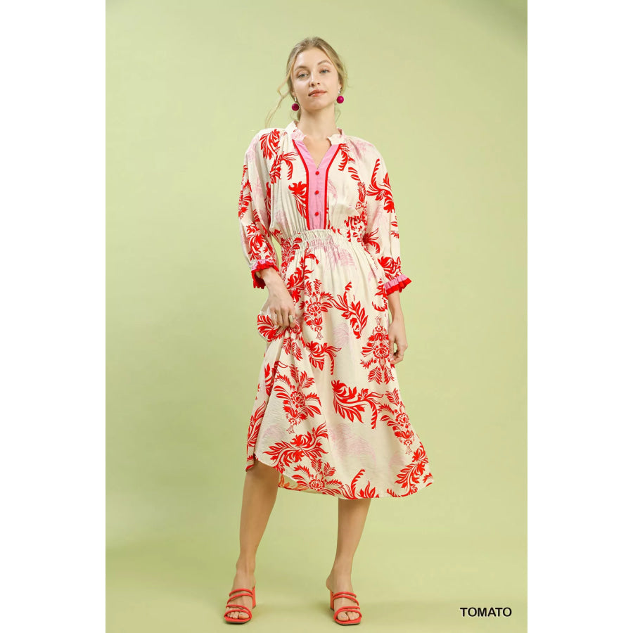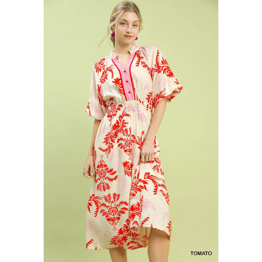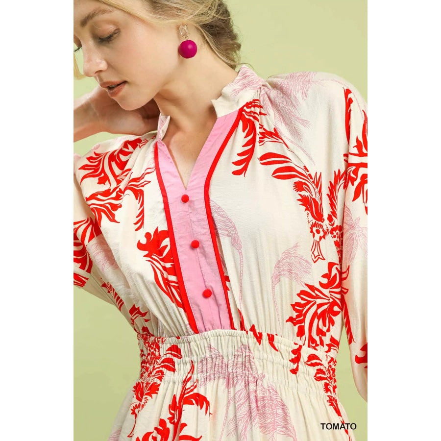 Umgee Tropical Print Button Detail Midi Dress