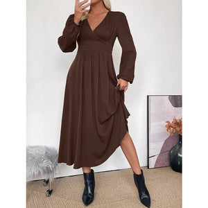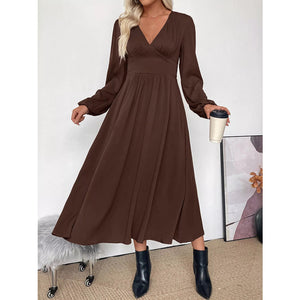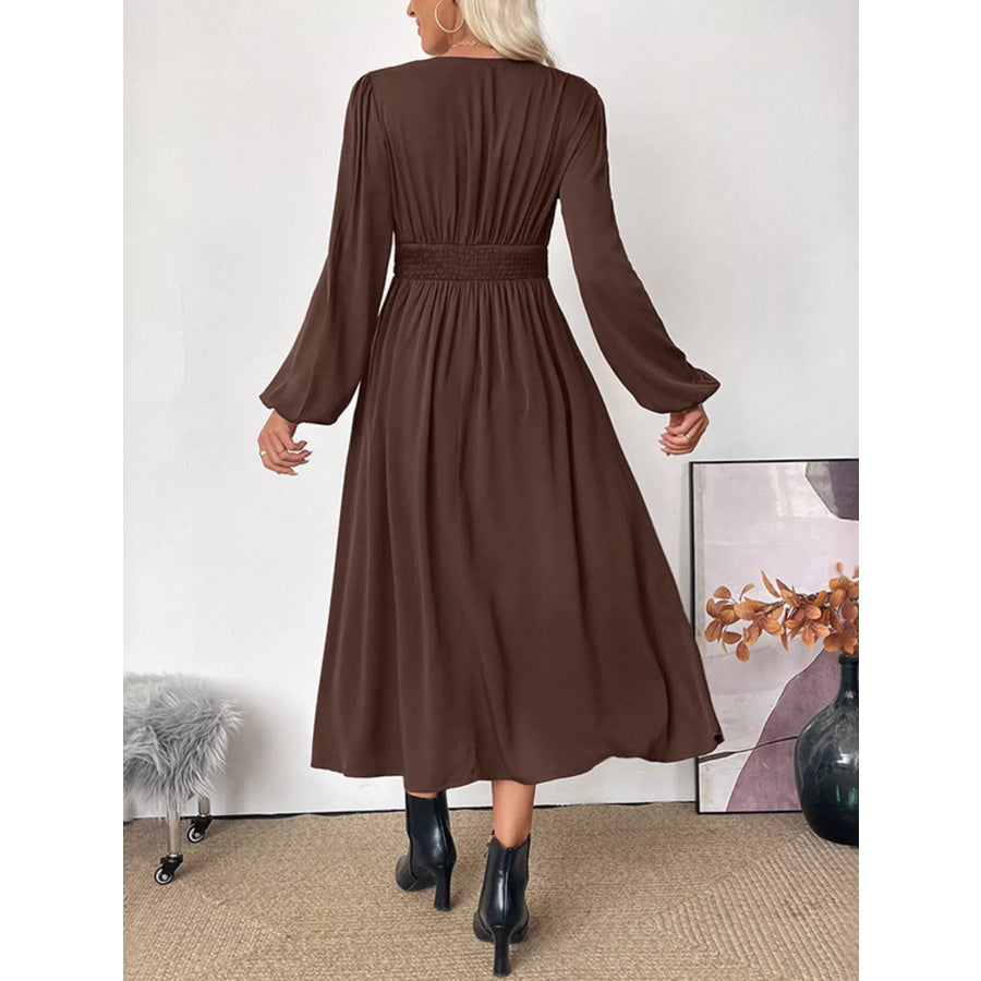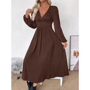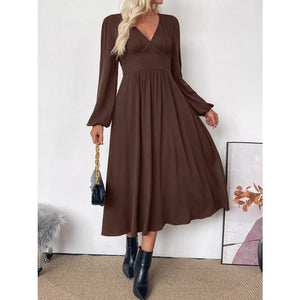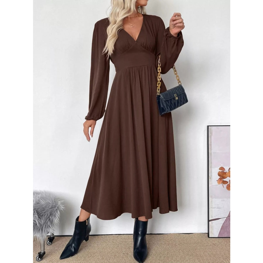 V-Neck Balloon Sleeve Midi Dress