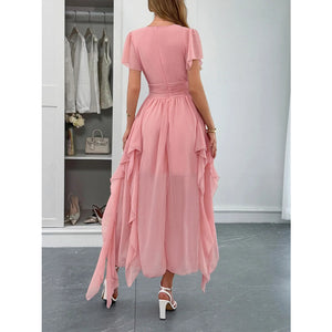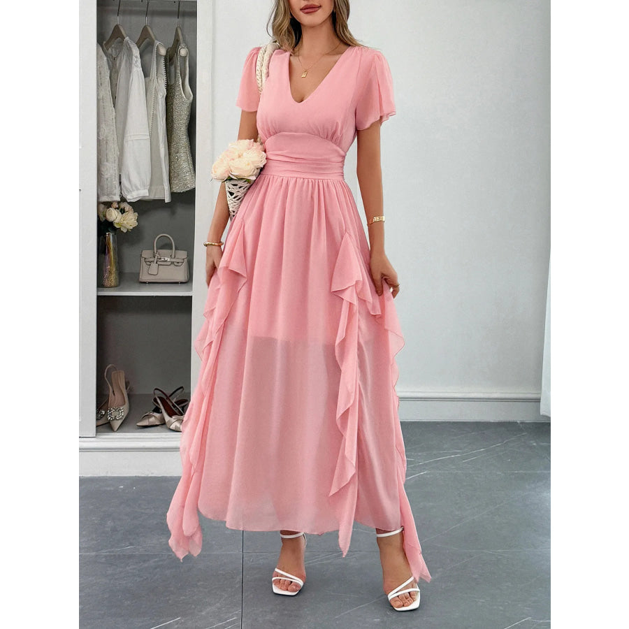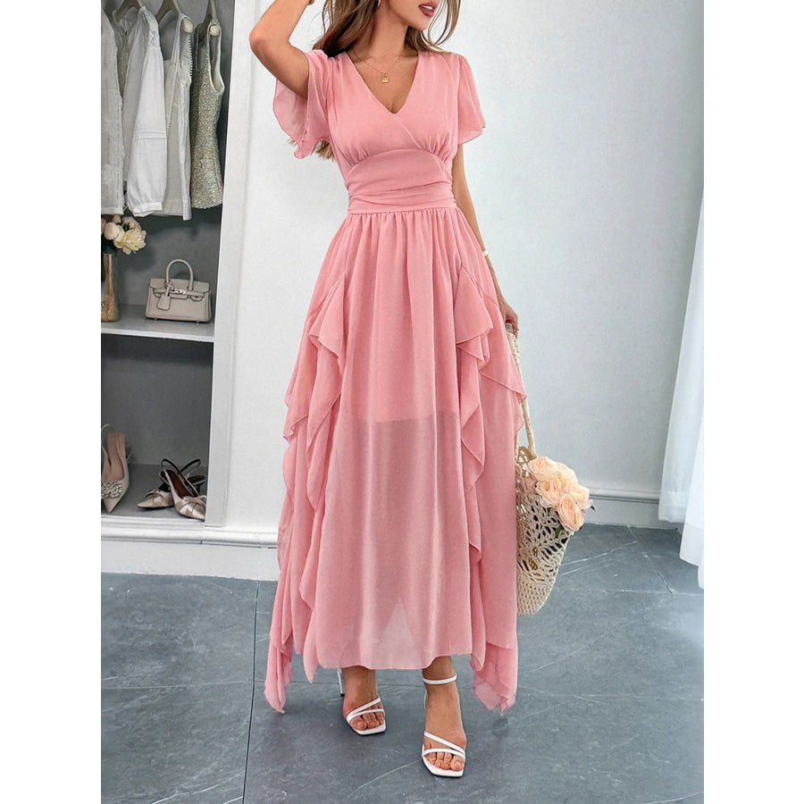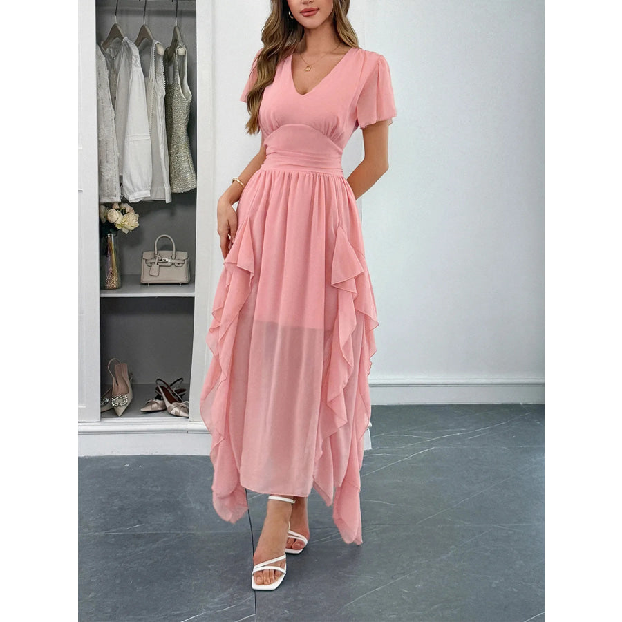 V-Neck Flutter Sleeve Dress