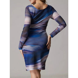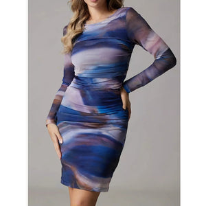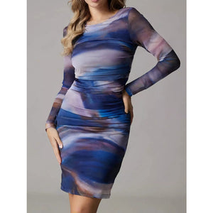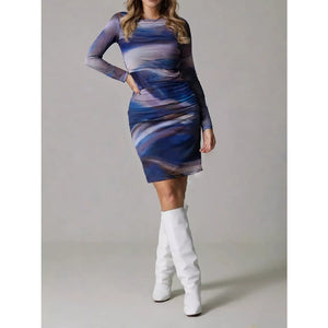 Watercolor Print Mesh Bodycon Dress