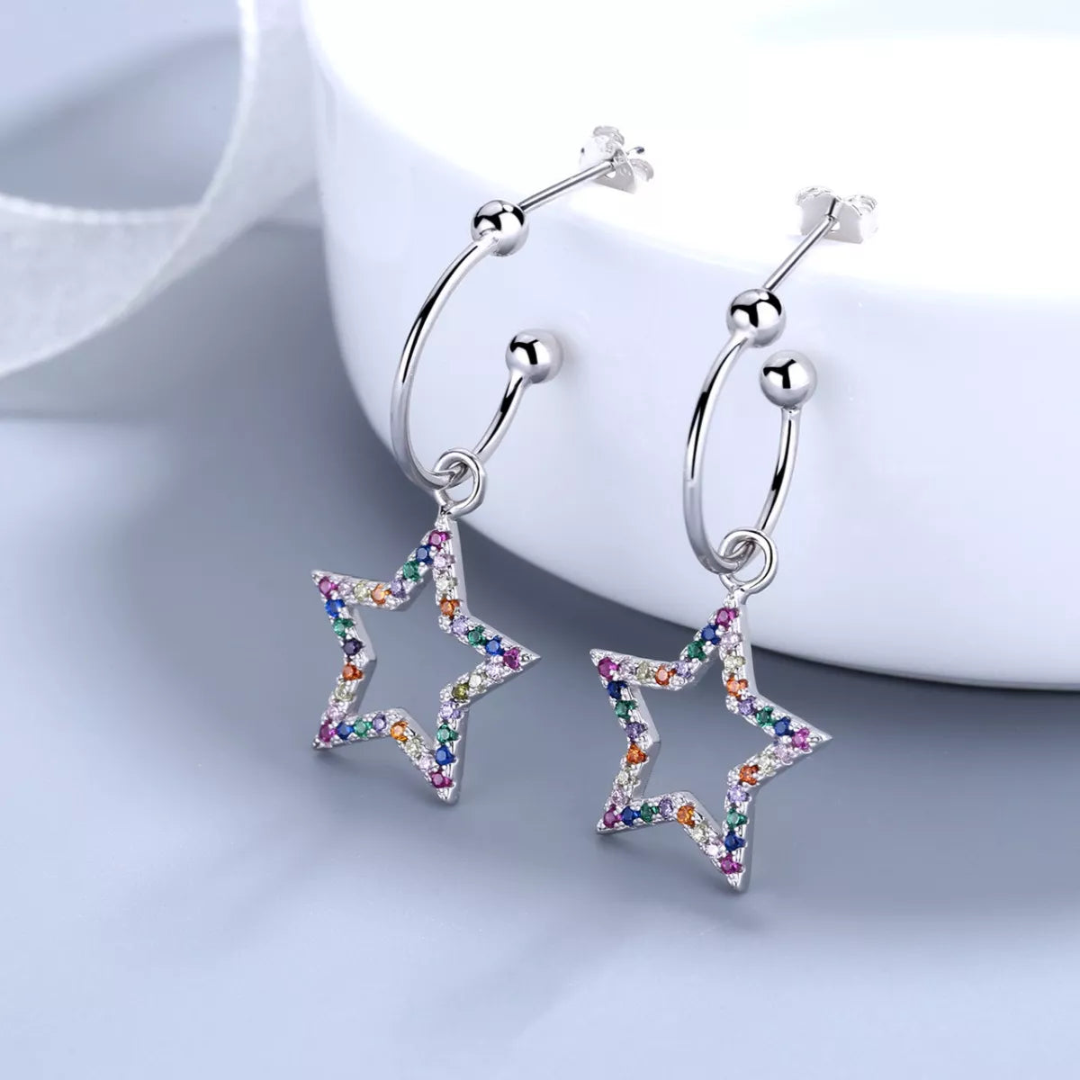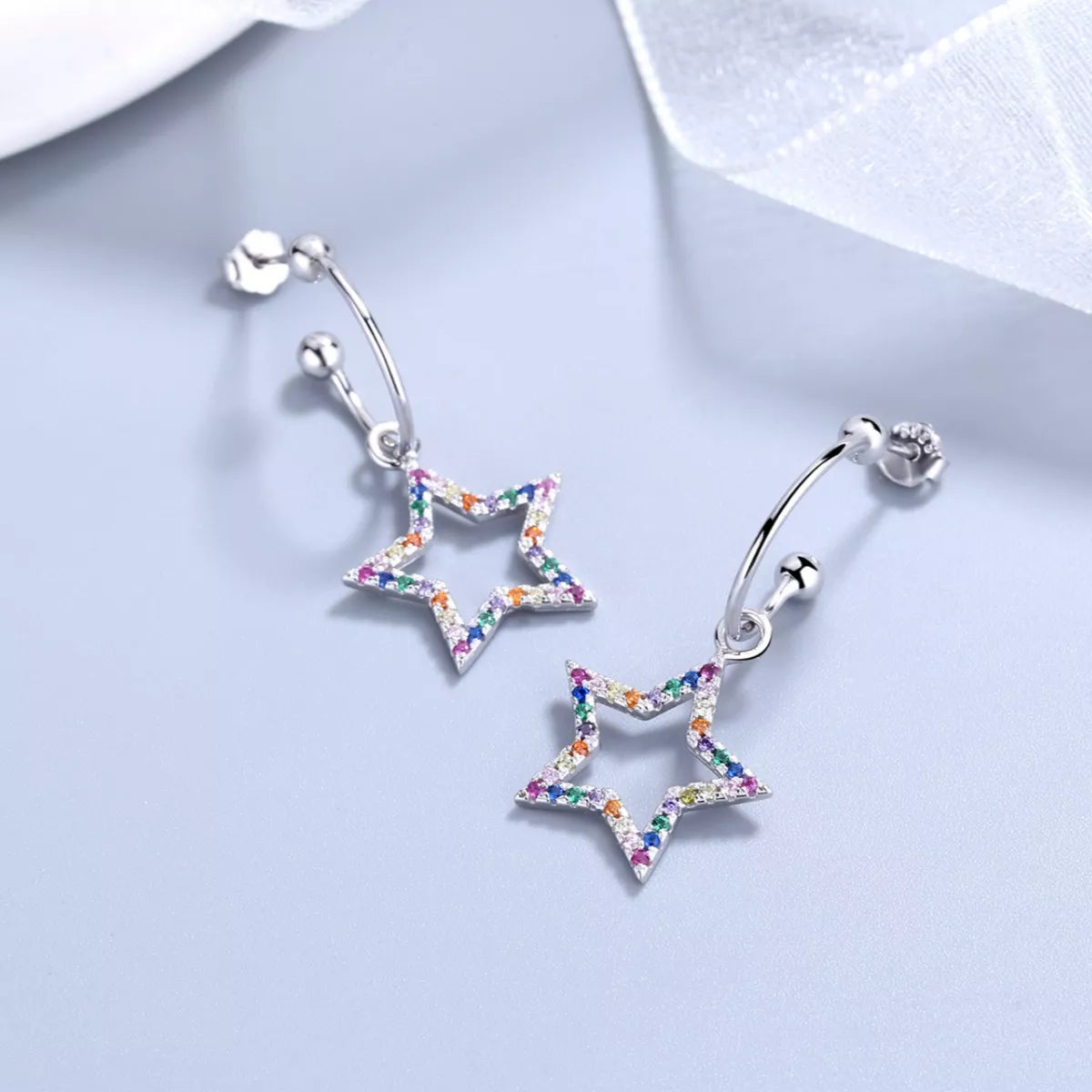 Star C-Hoop Dangle Earrings
