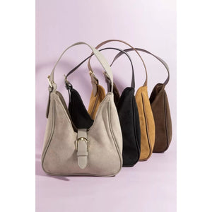 The Buckle Accent Faux Suede Hand Bag is a chic and versatile accessory for any outfit. Featuring a stylish buckle accent, this handbag adds a touch of sophistication. Made from faux suede material, it offers a luxurious look and feel. The handbag is perfect for adding a fashionable touch to your ensemble. Elevate your style with this trendy and elegant faux suede handbag.