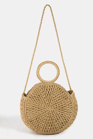 Fame Circle Handle Circle Straw Braided Hand Bag